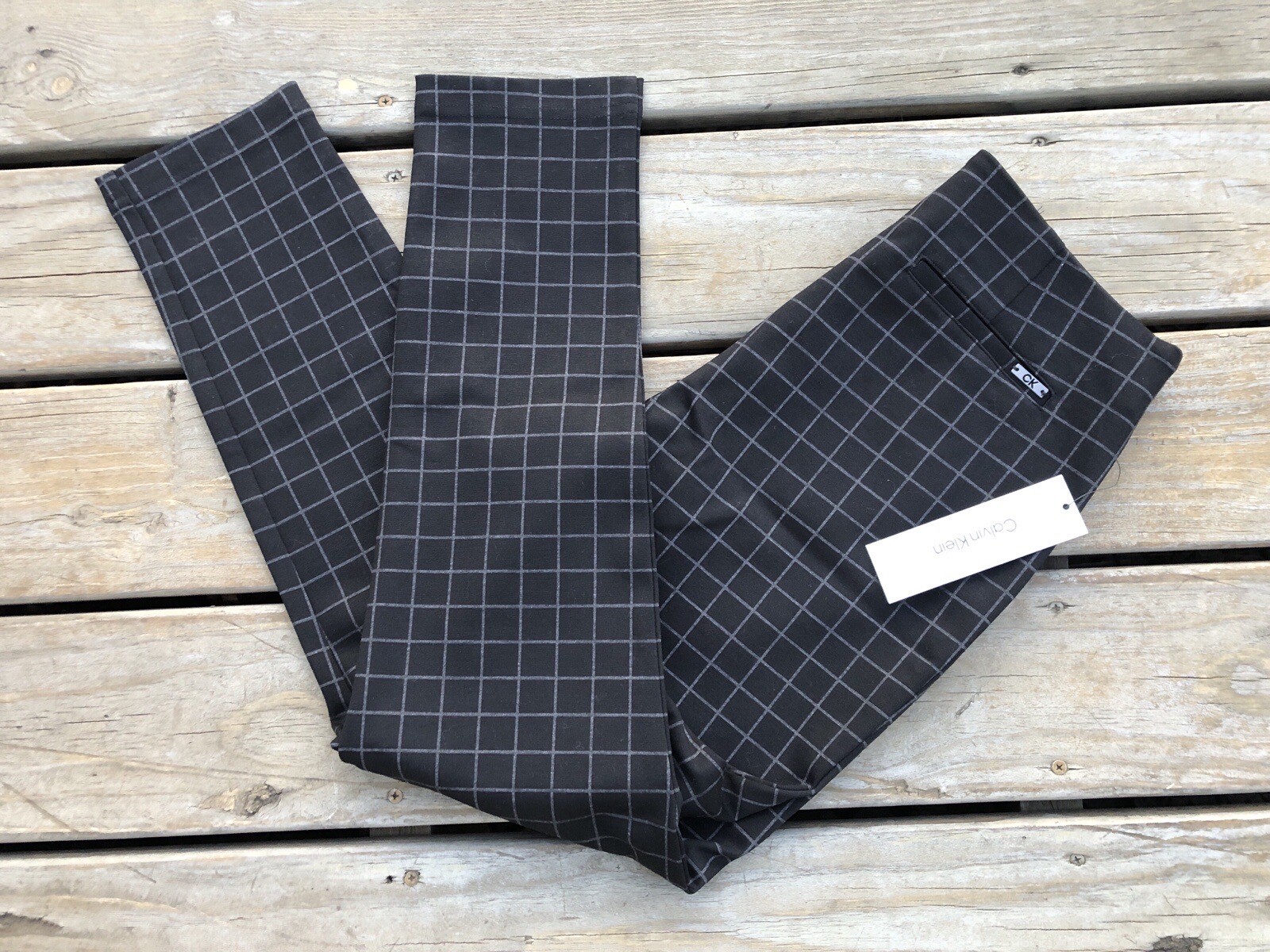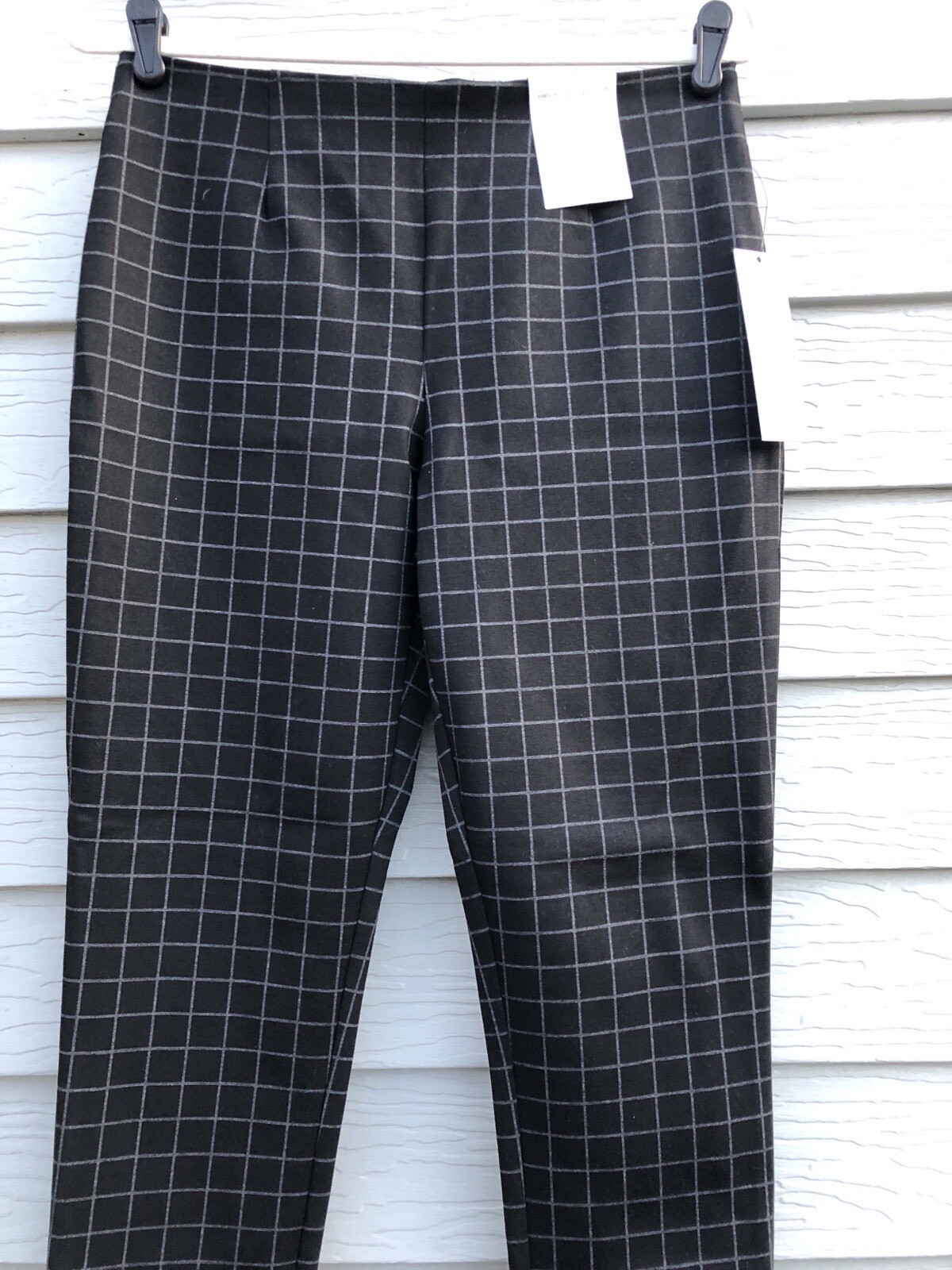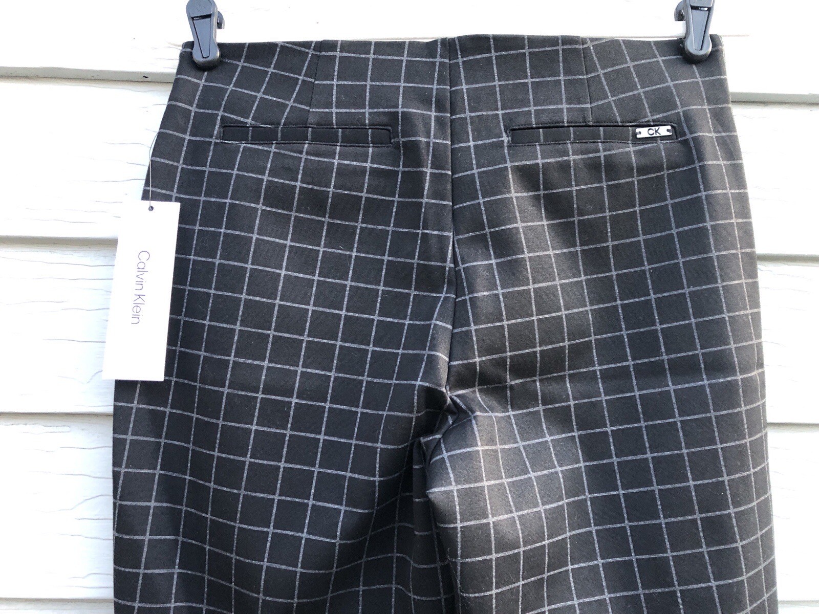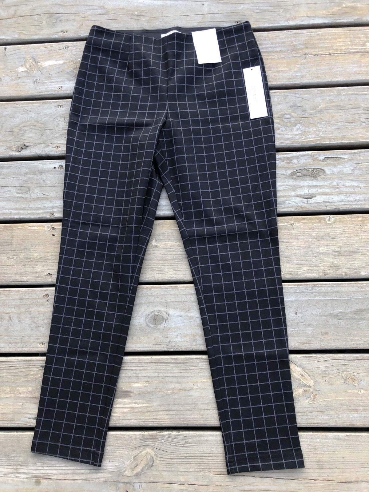 Calvin Klein NWT Womens Pull-On Stretch Pants Black/Gray Plaid Slim Fit Size 10