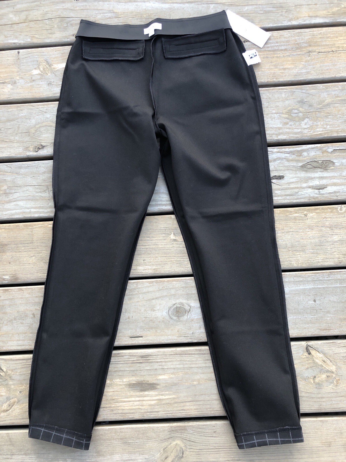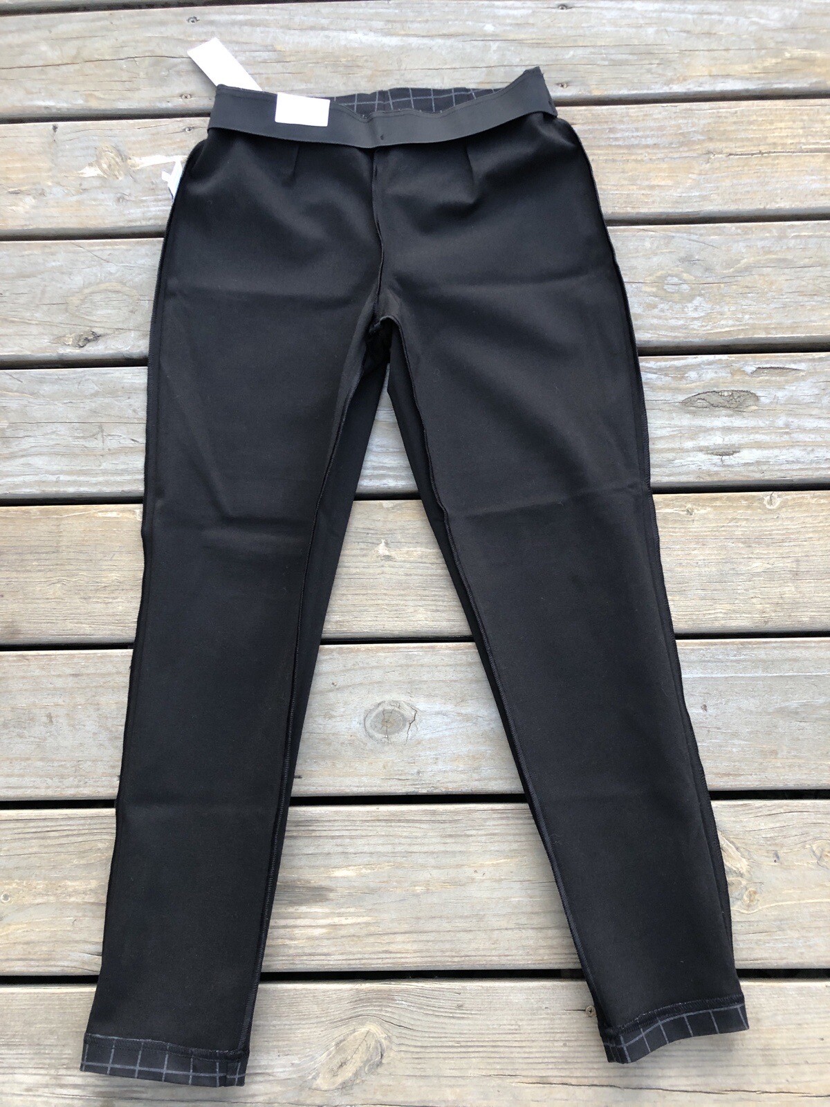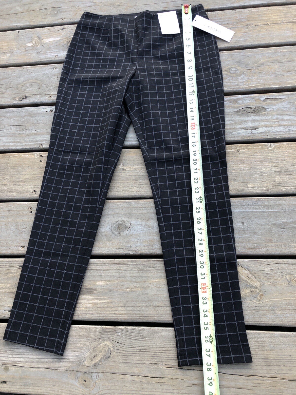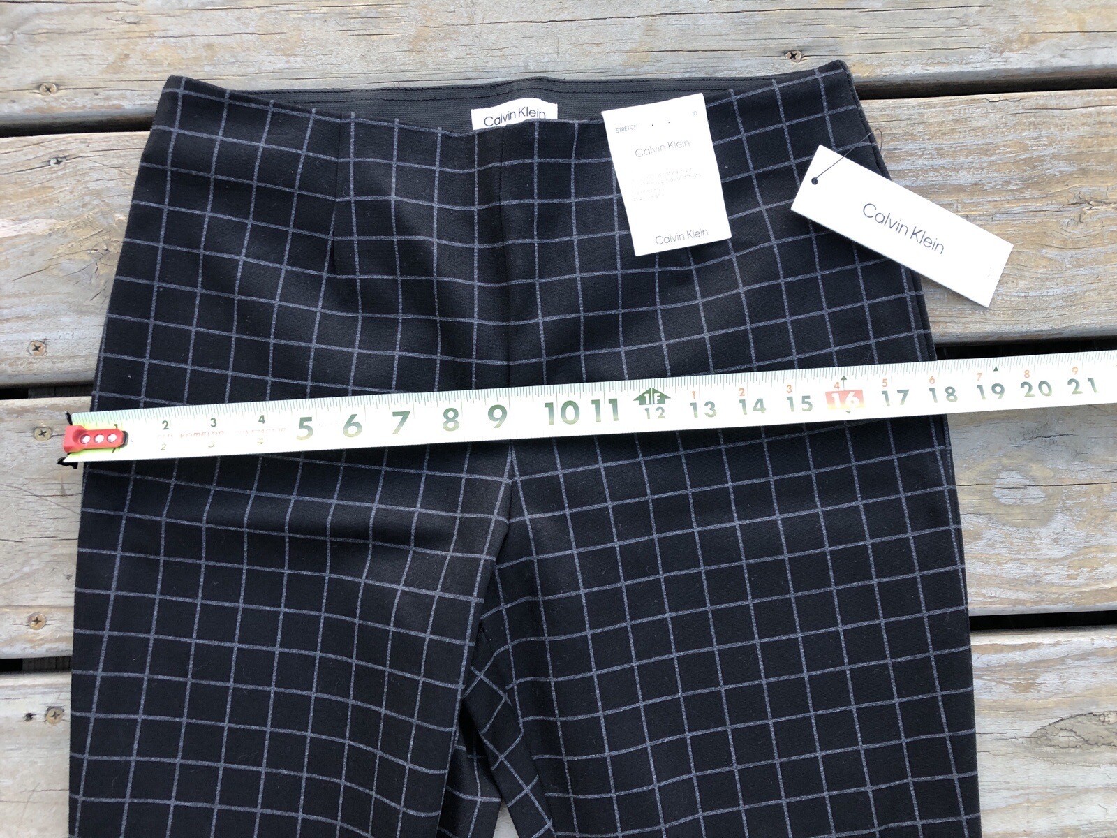 Calvin Klein NWT Womens Pull-On Stretch Pants Black/Gray Plaid Slim Fit Size 10