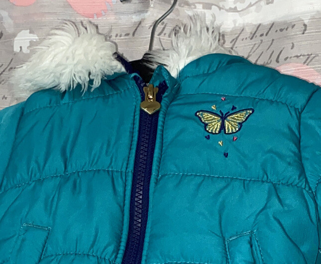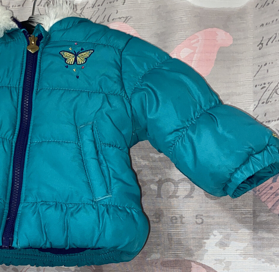 как выглядит LONDON FOG Winter Coat Jacket In Girls Toddler Size 18M Teal/White Faux Fur Hood фото