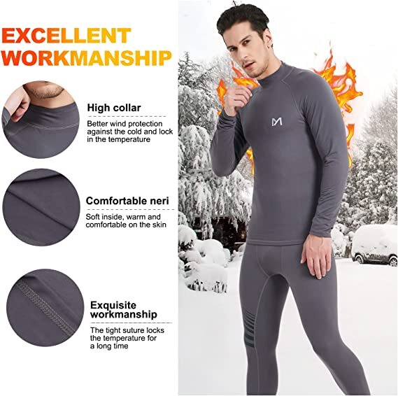 Mens Fleece Lined Thermal Long Johns Top Bottom Underwear Set Winter Turtleneck