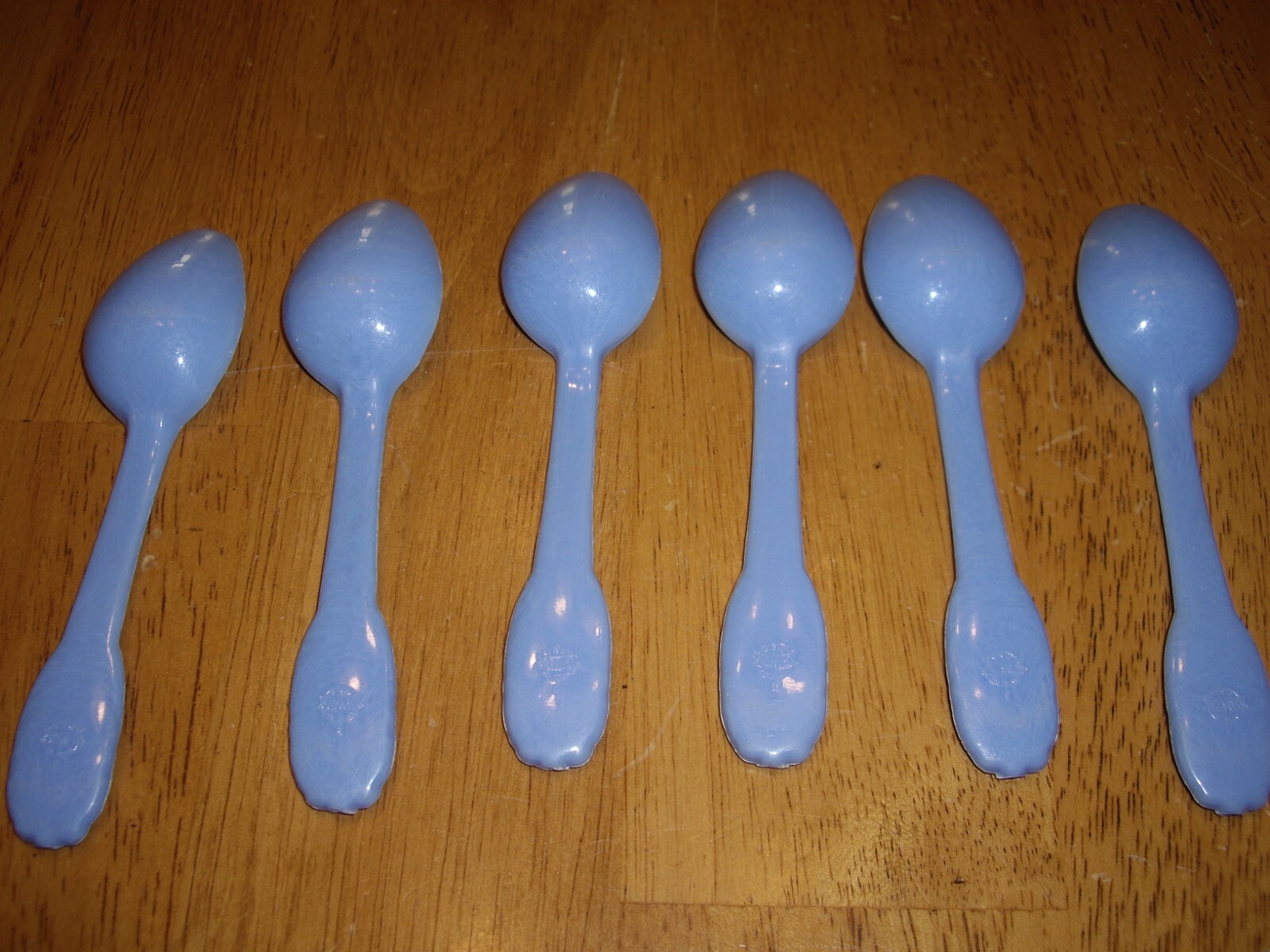 как выглядит T6 Vintage Irwin Childs Blue Plastic Dishes Tea Set Utensils 34pcs фото