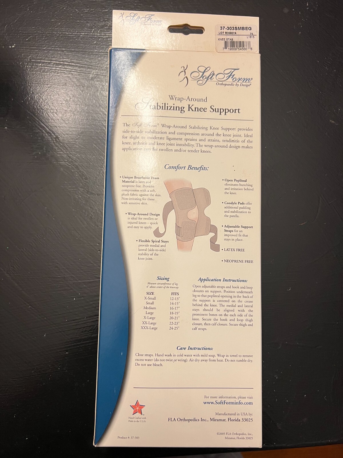 New in box FLA Soft Form Wrap-Around Stabilizing Knee Support Beige Small