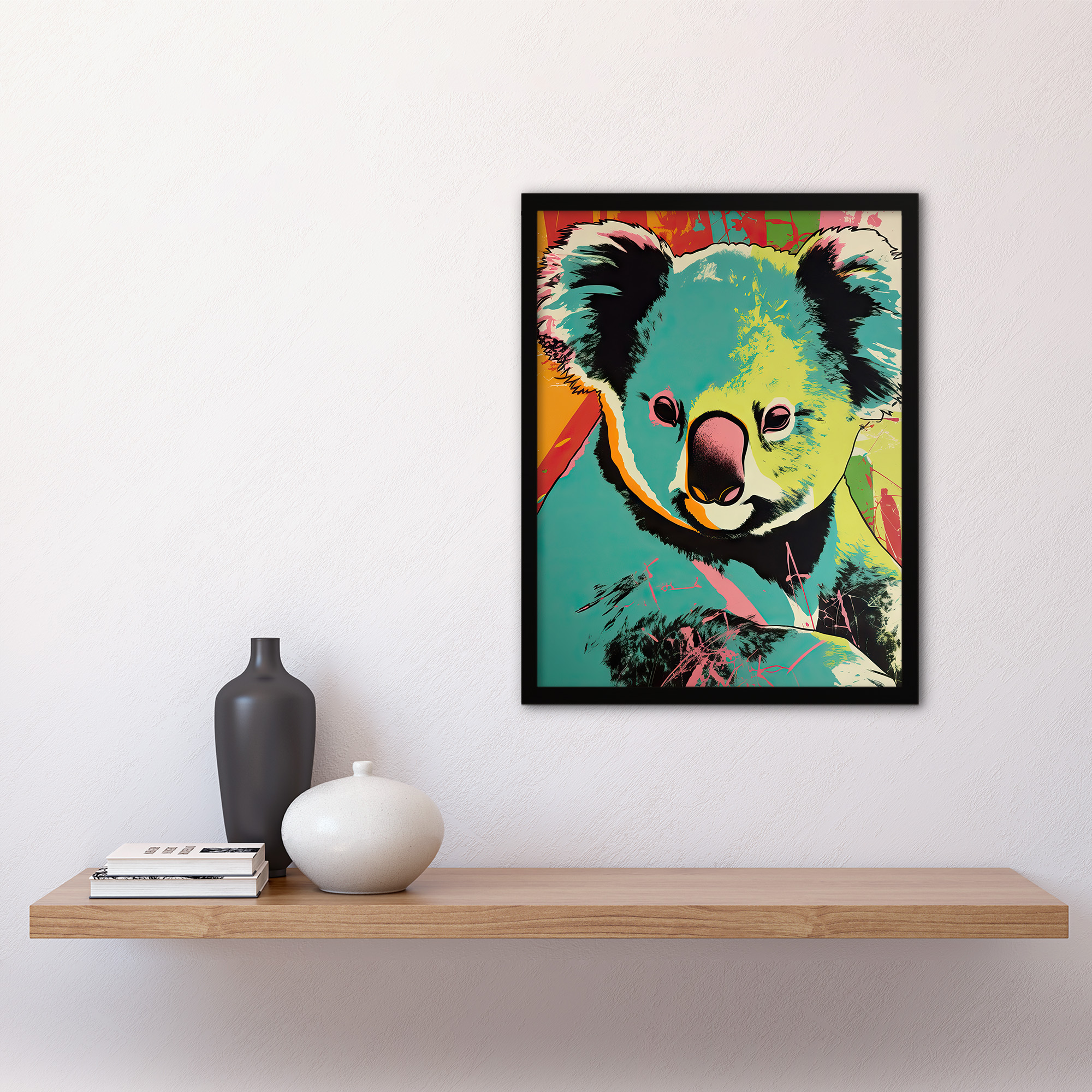 • Koala Bear Abstract Teal Orange Artwork Animal Portrait Wall Art Poster Print