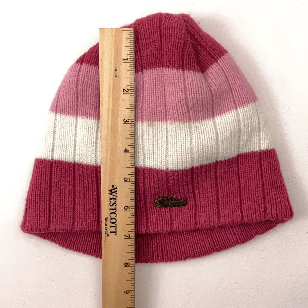 Screamer Pink White Stripe Winter Ski Hat