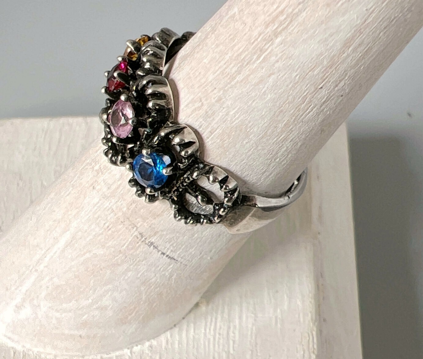 как выглядит Womens Sterling Silver Ring Detail Around Rainbow Genuine Gemstones Size 6 фото