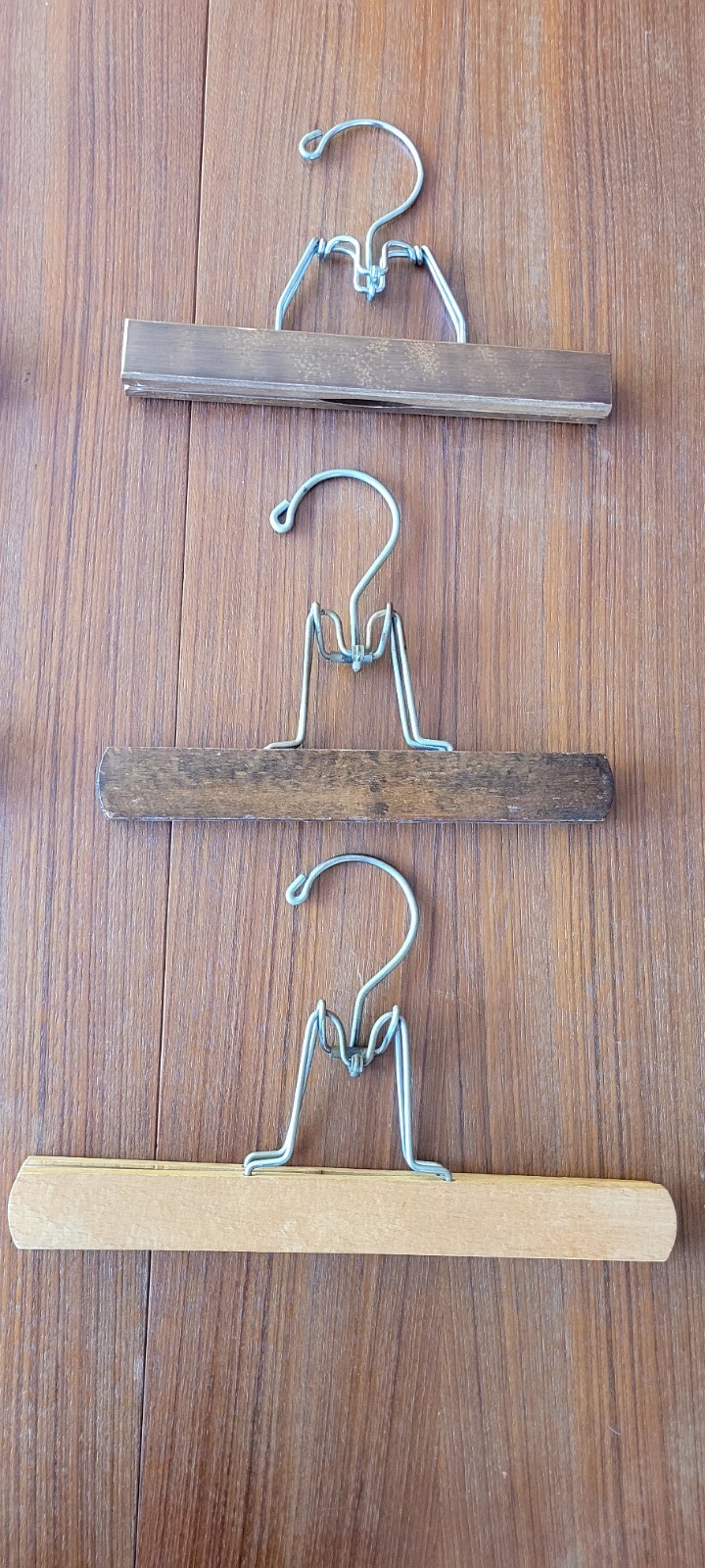 как выглядит 12 Vtg SETWELL and More Hangers Wooden Clamp Pants Skirts Trousers фото