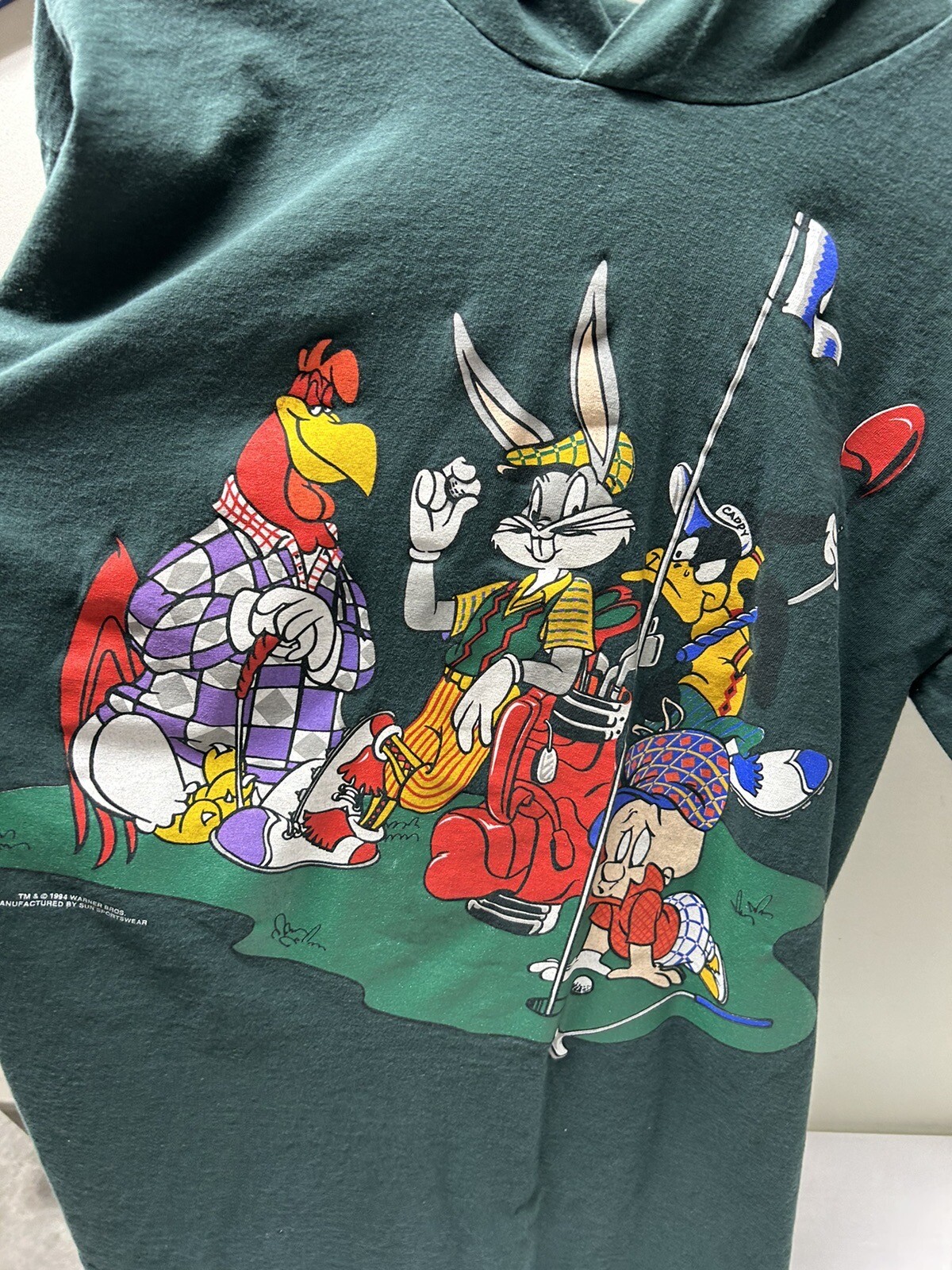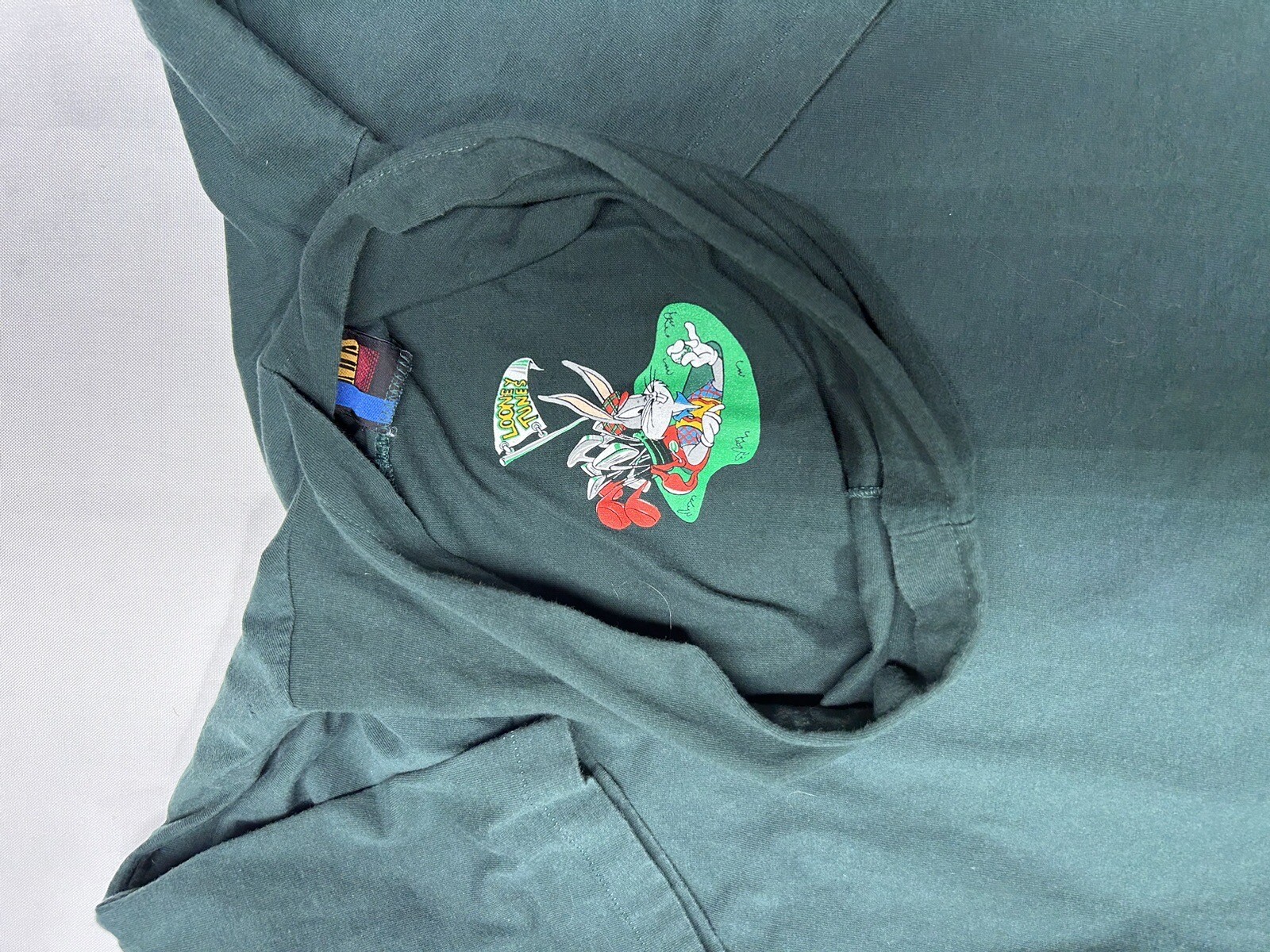 как выглядит 1994 Vintage Looney Tunes Hoodie T-shirt featuring Bugs Friends - Adult Size L фото