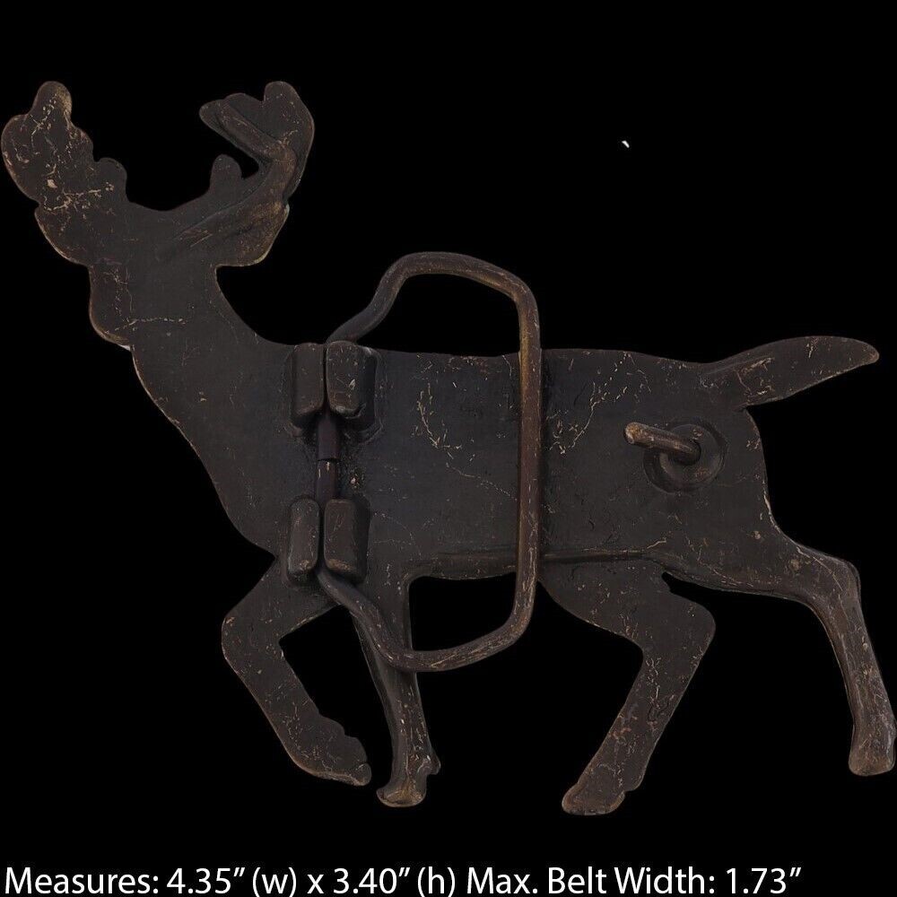 Deer Hunter Hunting Western Buck Stag Archery Forest 1980s Vintage Belt Buckle