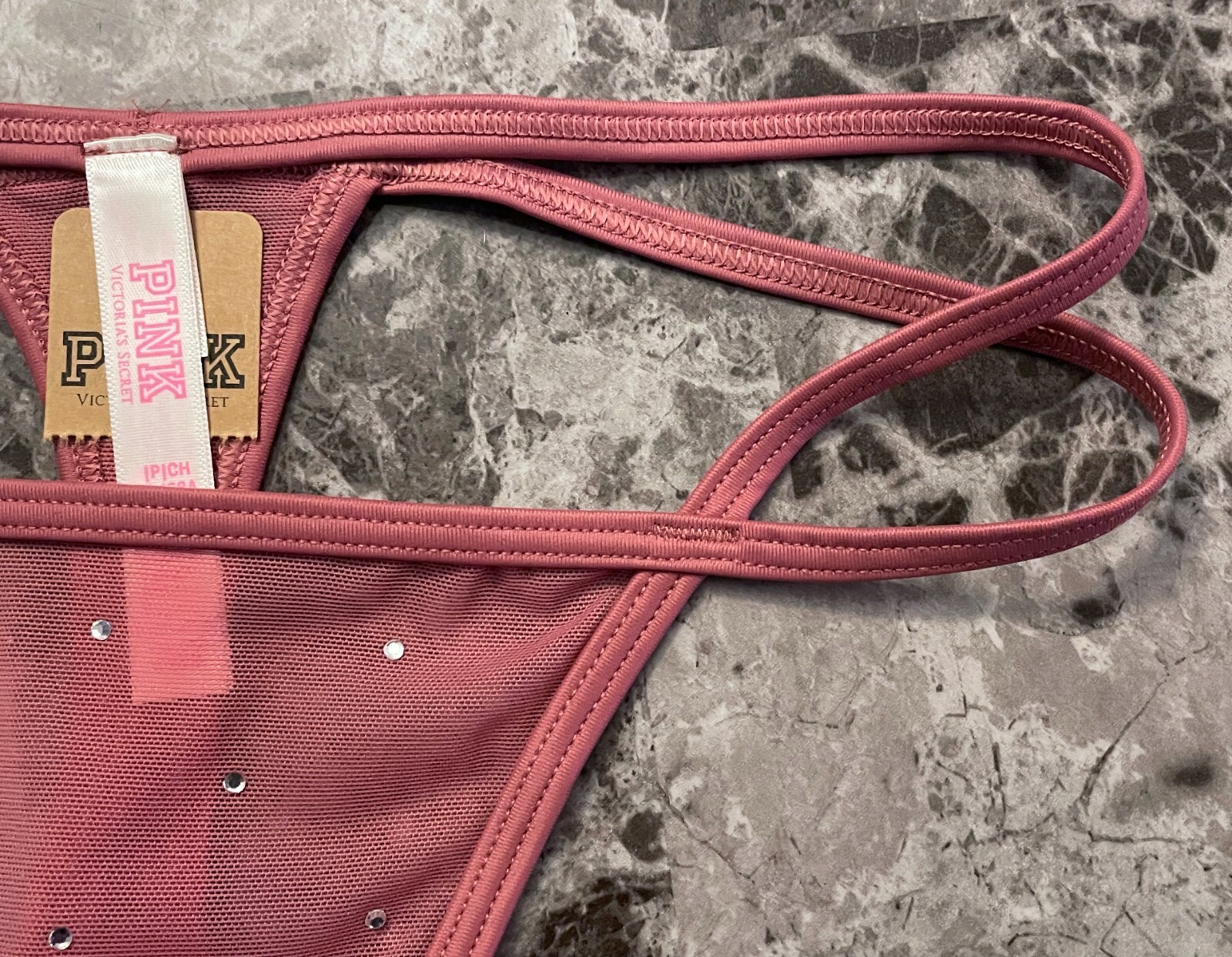 NWT VICTORIA'S SECRET PINK MESH RHINESTONE DOUBLE STRAPPY SIDE THONG PANTIES