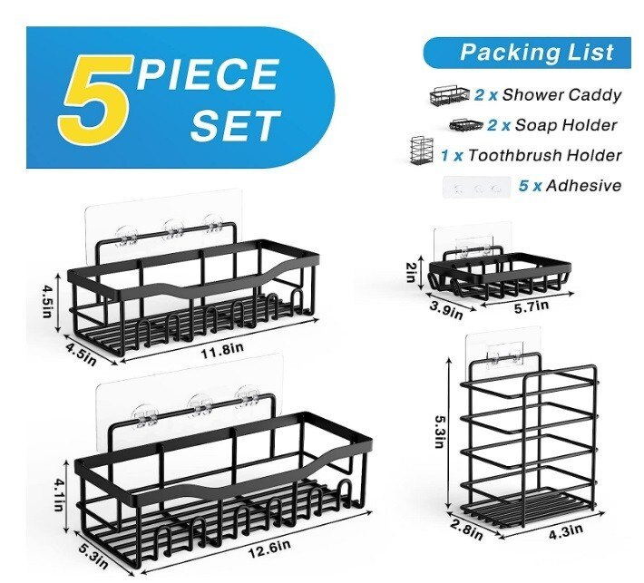 Shower Caddy 5 Pack,Adhesive Shower Organizer for Bathroom Storage Kitchen