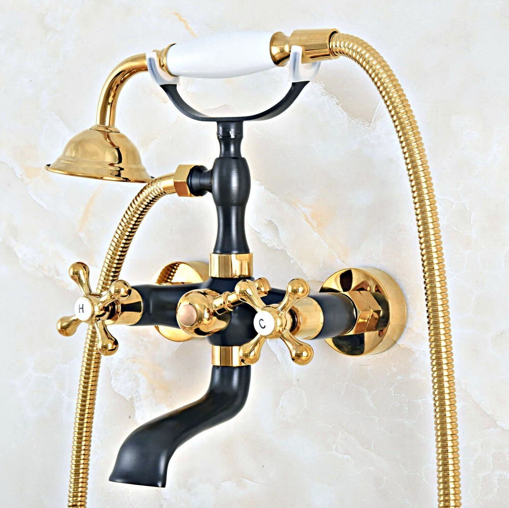Black Gold Brass Wall Mounted Clawfoot Bath Tub Faucet Hand Shower Mixer Tap