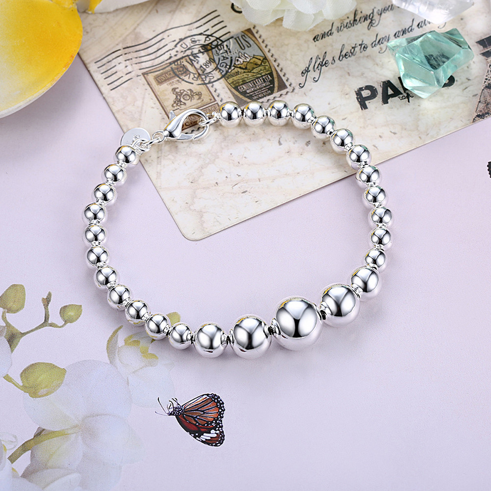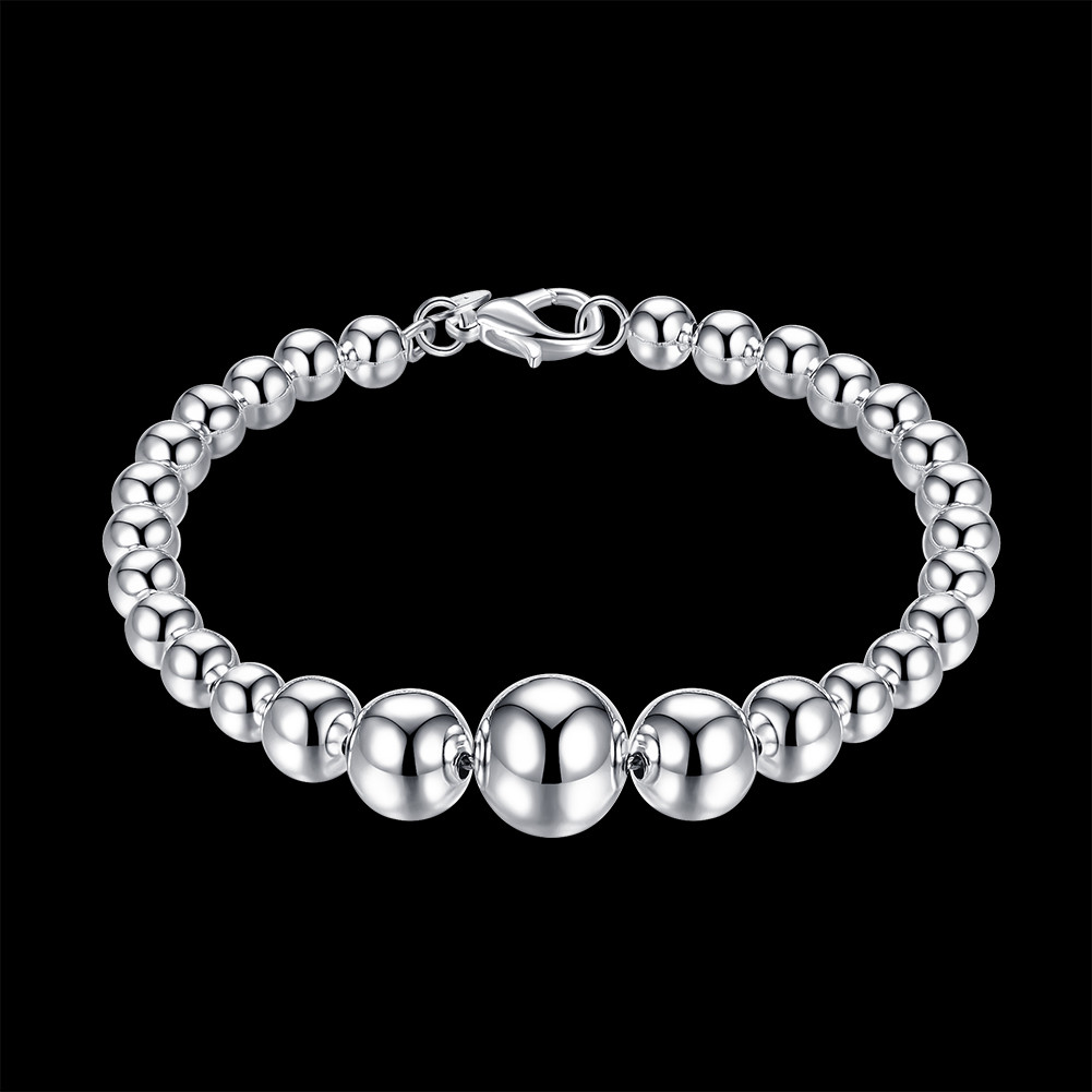 как выглядит Womens 925 Sterling Solid Silver 10mm Beads Ball String Chain Fashion Bracelet фото