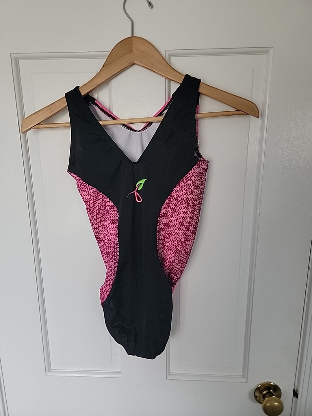 как выглядит GK Leotard Size AS Hot Pink and Black Breast Cancer Awareness Symbol фото
