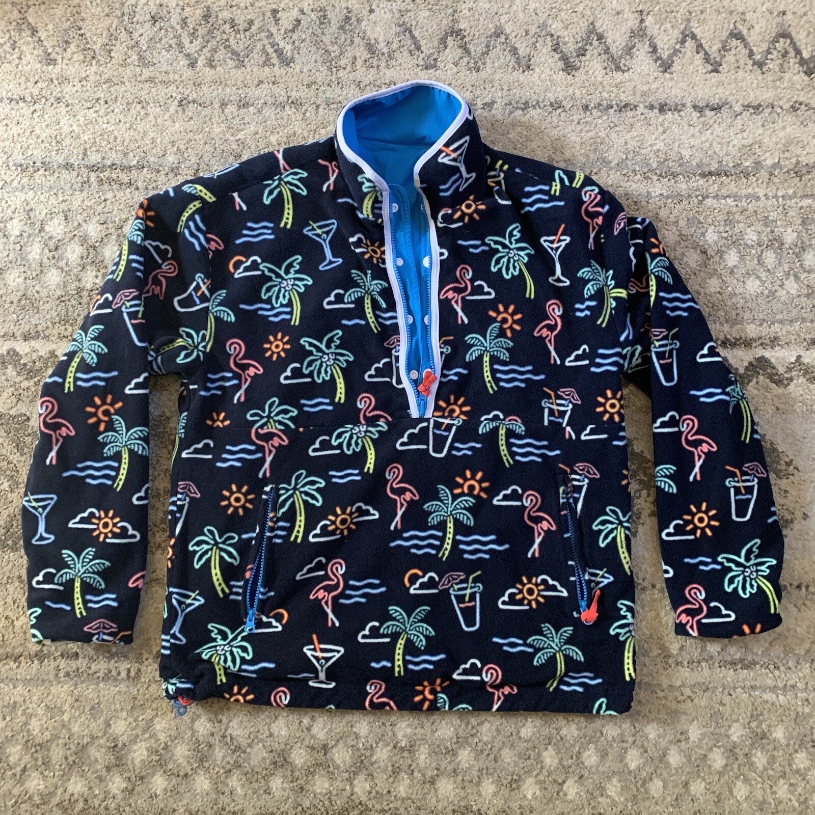 Chubbies Blue Cocktail Flamingo Neon Reversible Fleece Pullover Jacket Medium