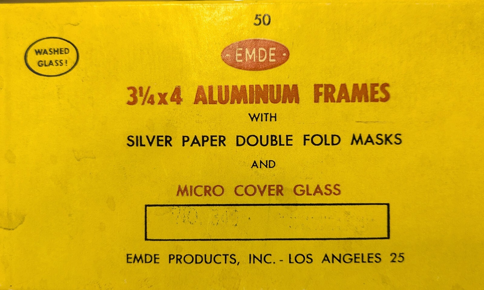 EMDE 3 1/4 x 4 GLASS SLIDE MOUNTS WITH ALUMINUM FRAMES, 69 Units