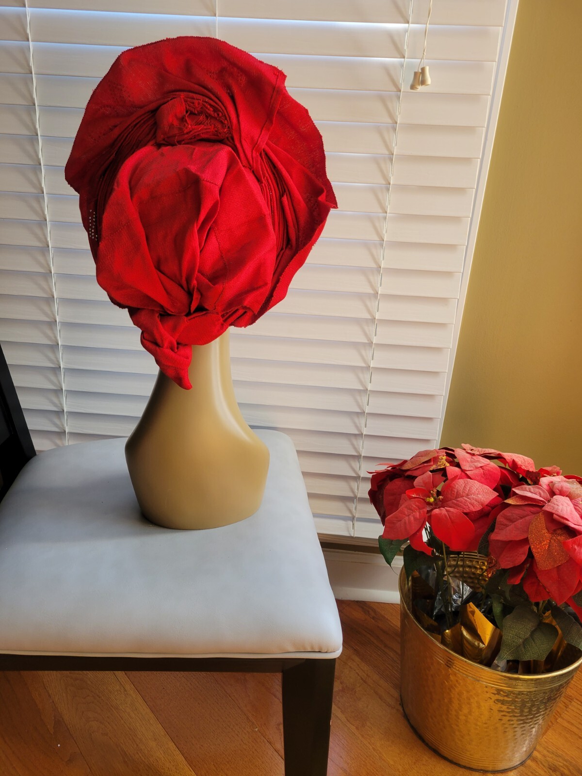 как выглядит Aso-Oke African Headtie Auto Gele, Ready Made Gele Red With Stones фото