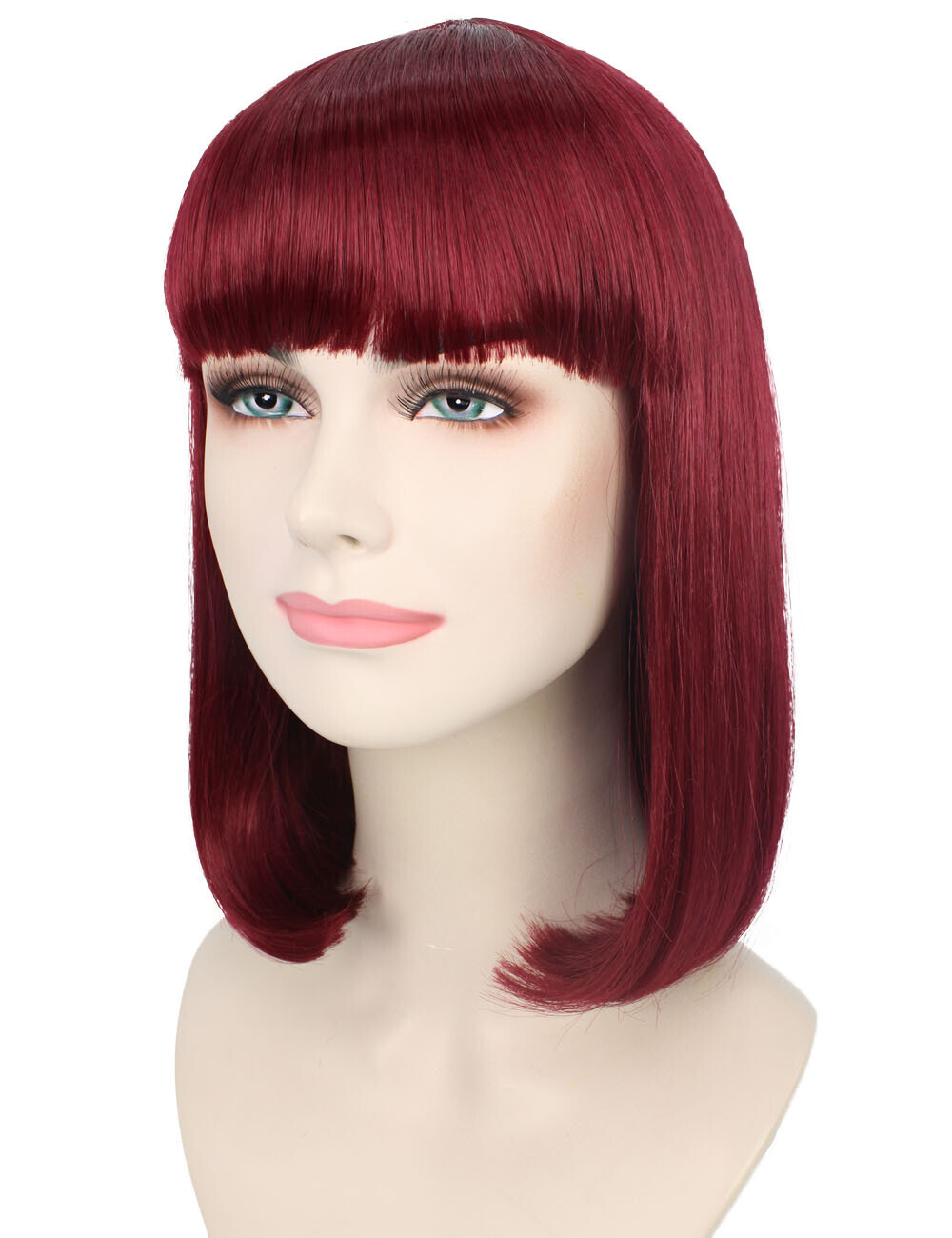 HPO Adult Women's Burgundy Straight Short Bob Wig with Bangs, HW-6795
