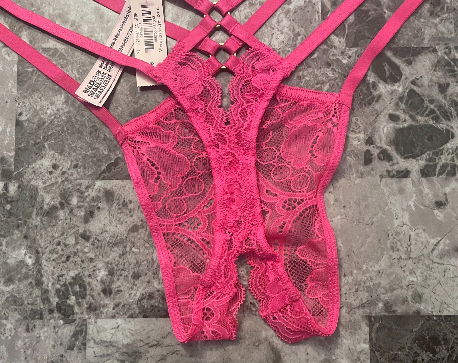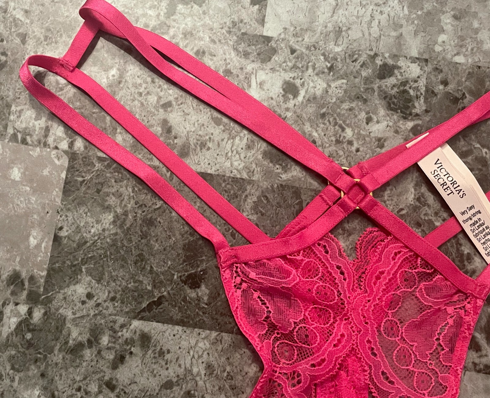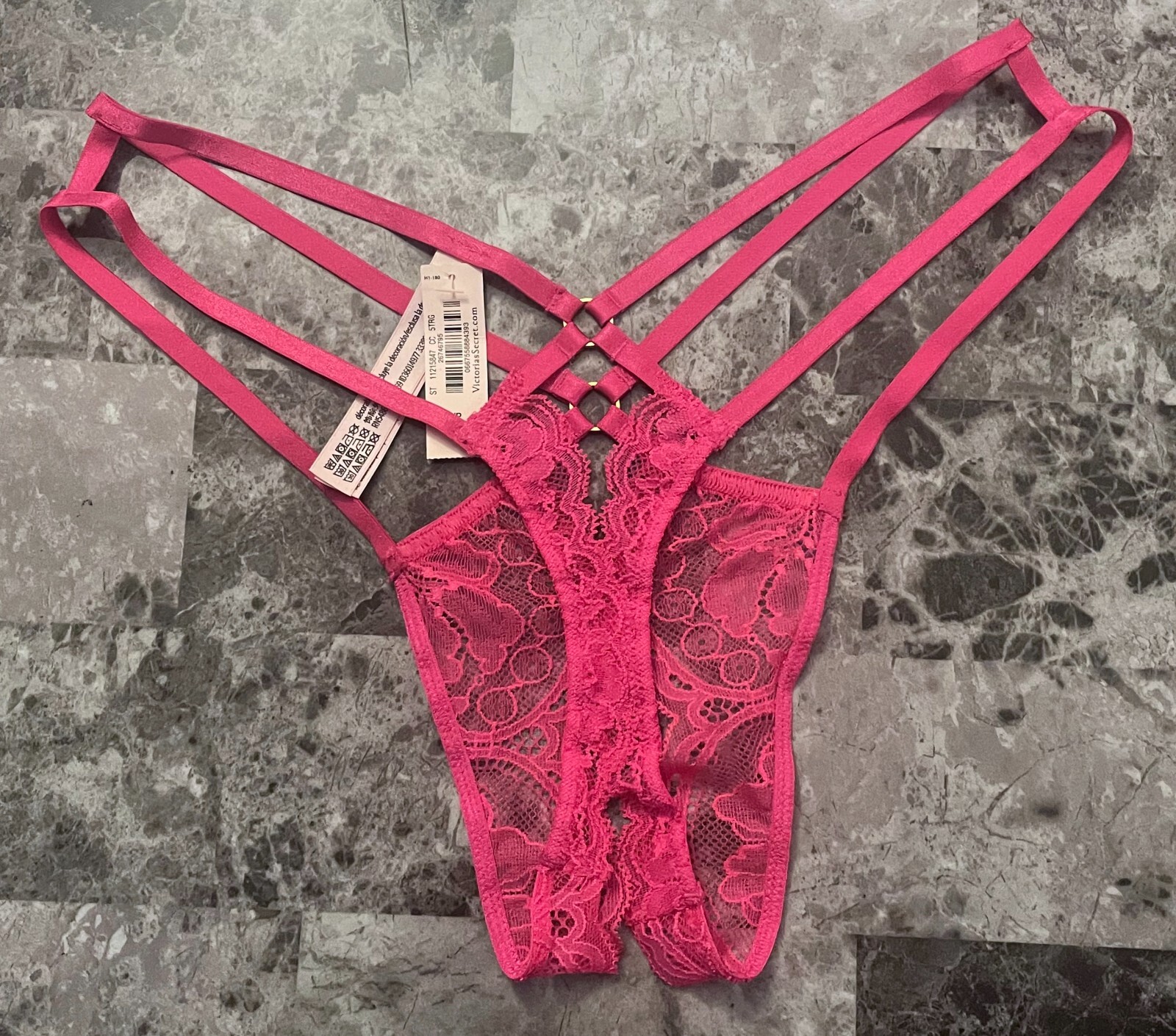 NWT VICTORIA'S SECRET PINK LACE STRAPPY GOLD RING CROTCHLESS THONG PANTIES
