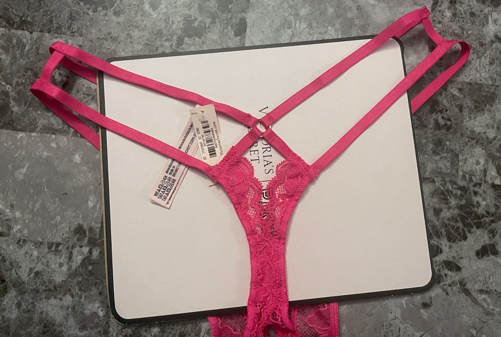 как выглядит NWT VICTORIAS SECRET PINK LACE STRAPPY GOLD RING CROTCHLESS THONG PANTIES фото