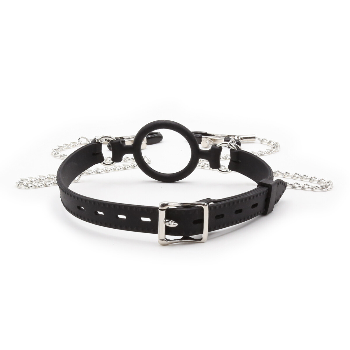 Open Mouth O-Ring Gag with Breast Clamps Slave Game Oral Fixation Bondage BDSM