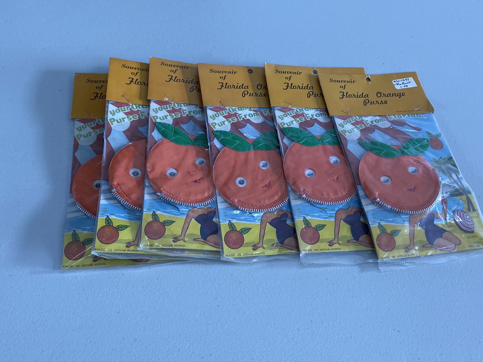 Vintage Florida Orange Zipper Purse Girl Anthropomorphic Face Fruit Souvenir