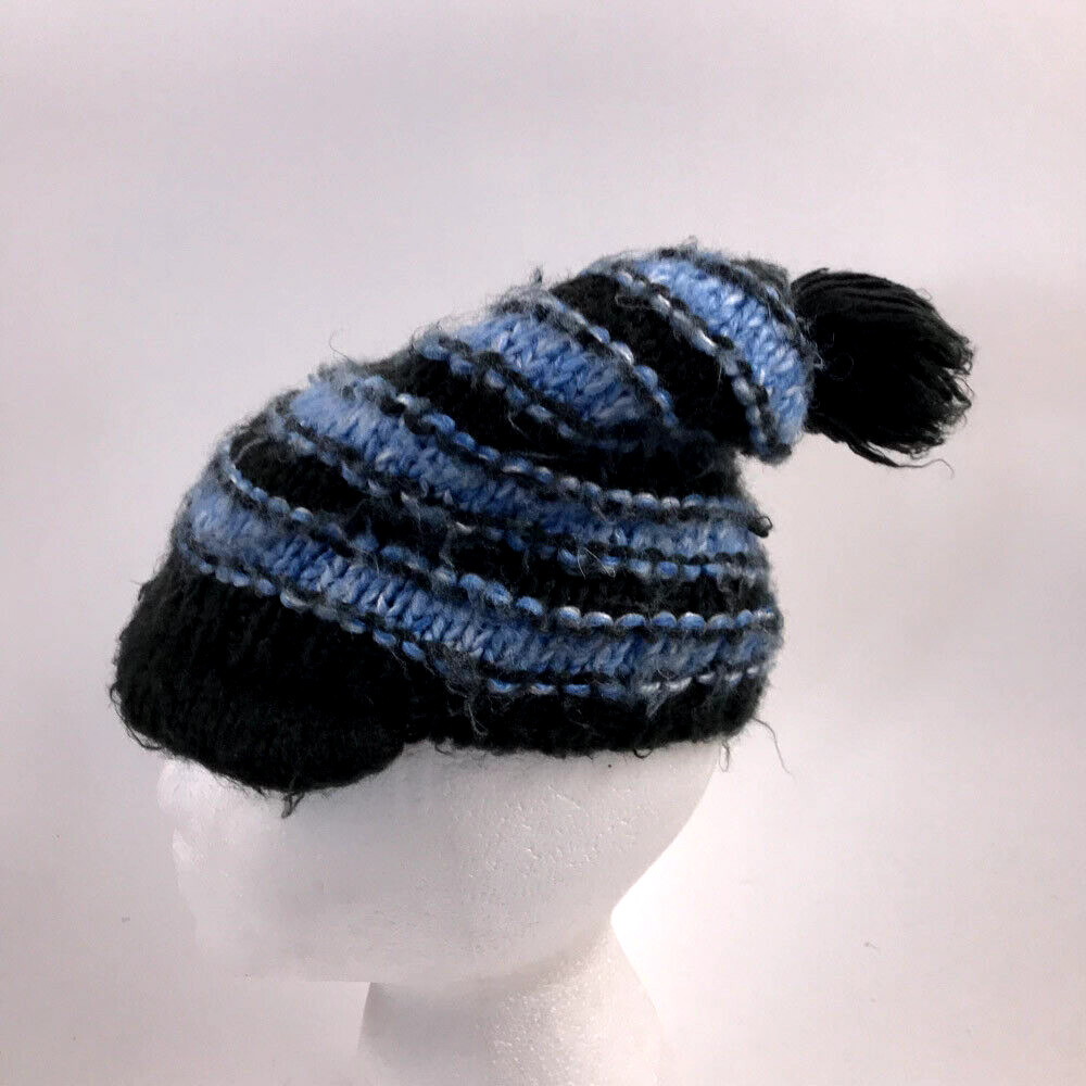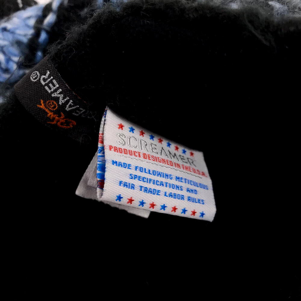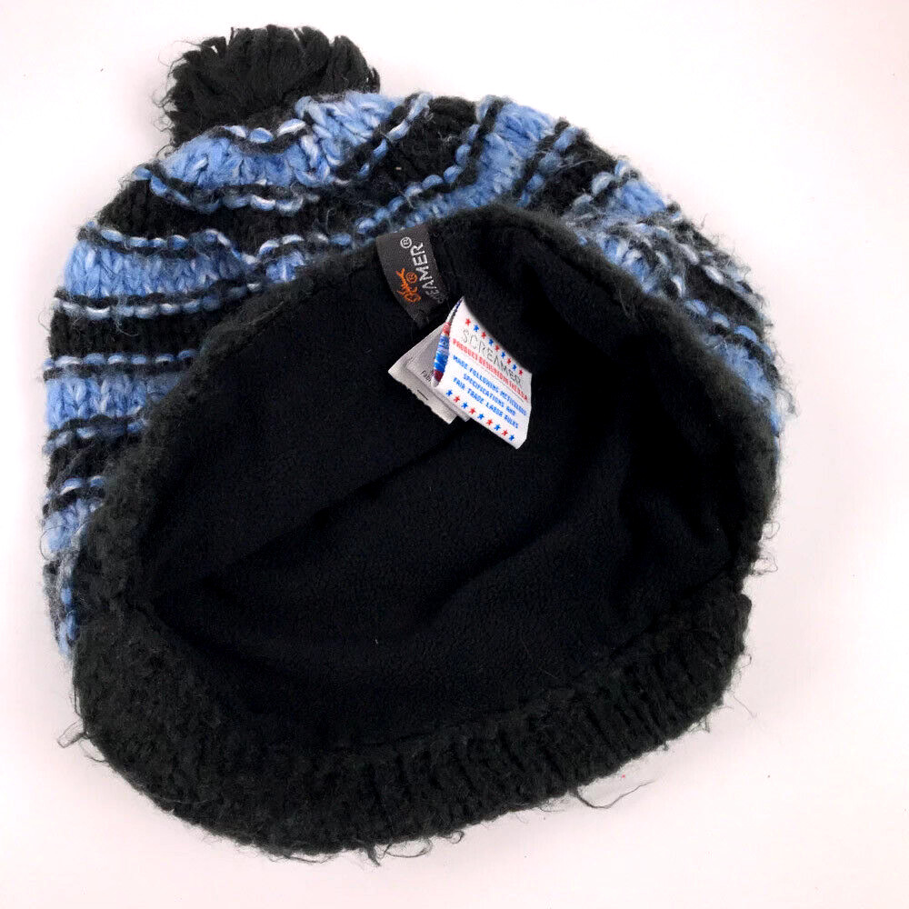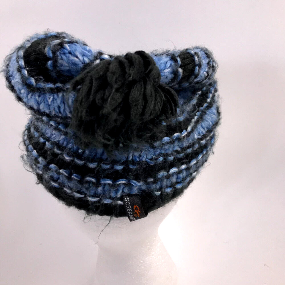 Screamer soft brim blue black stripe knit Winter Hat Toboggan Style Brim