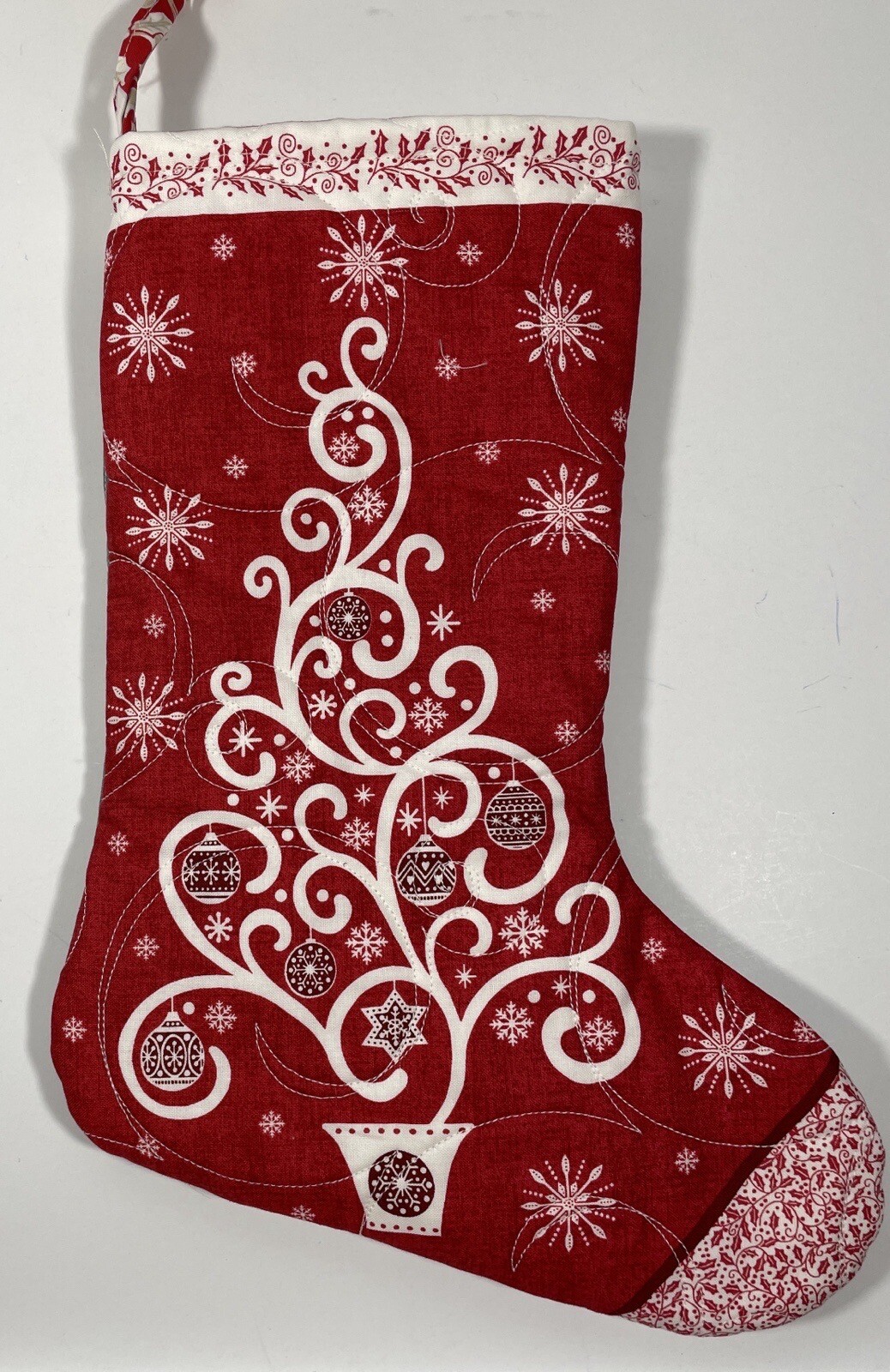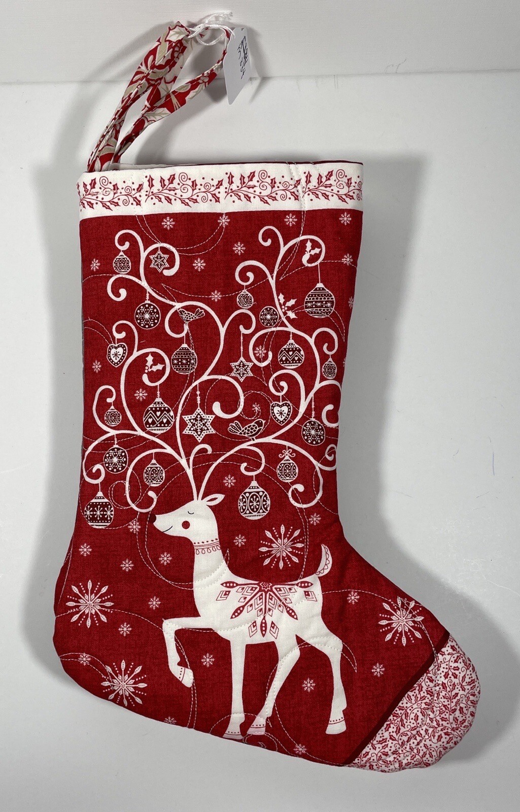 как выглядит Quilted Charismas Stockings set of 2 Red Gray with Scandinavian Deer and Trees фото