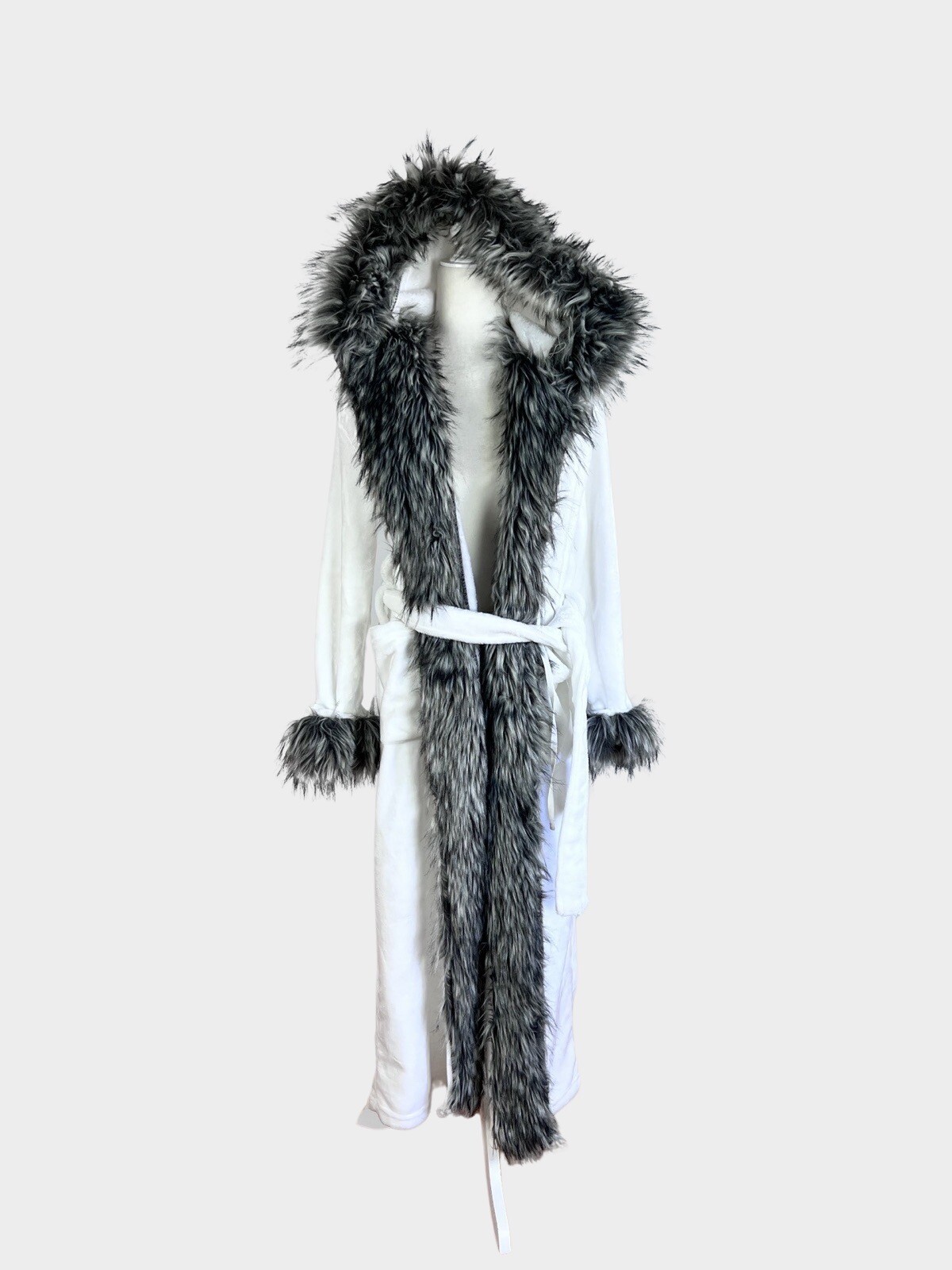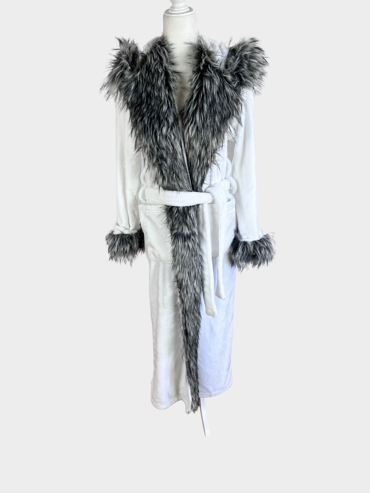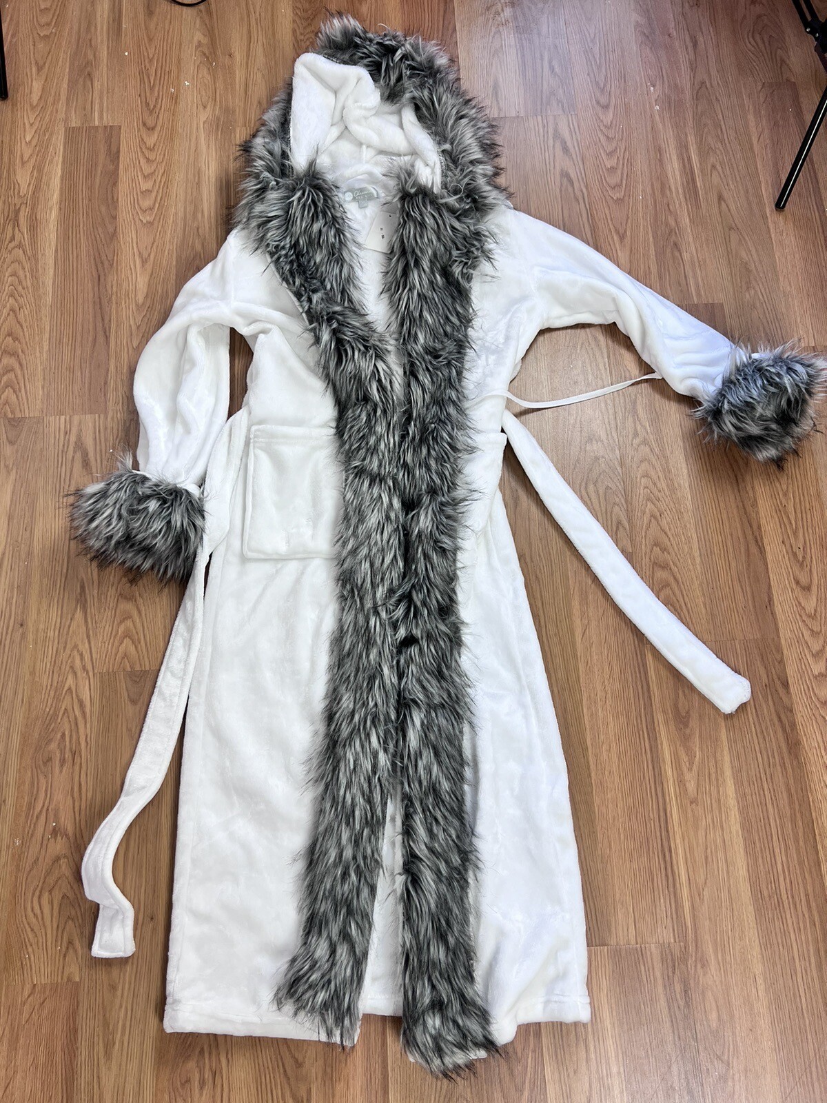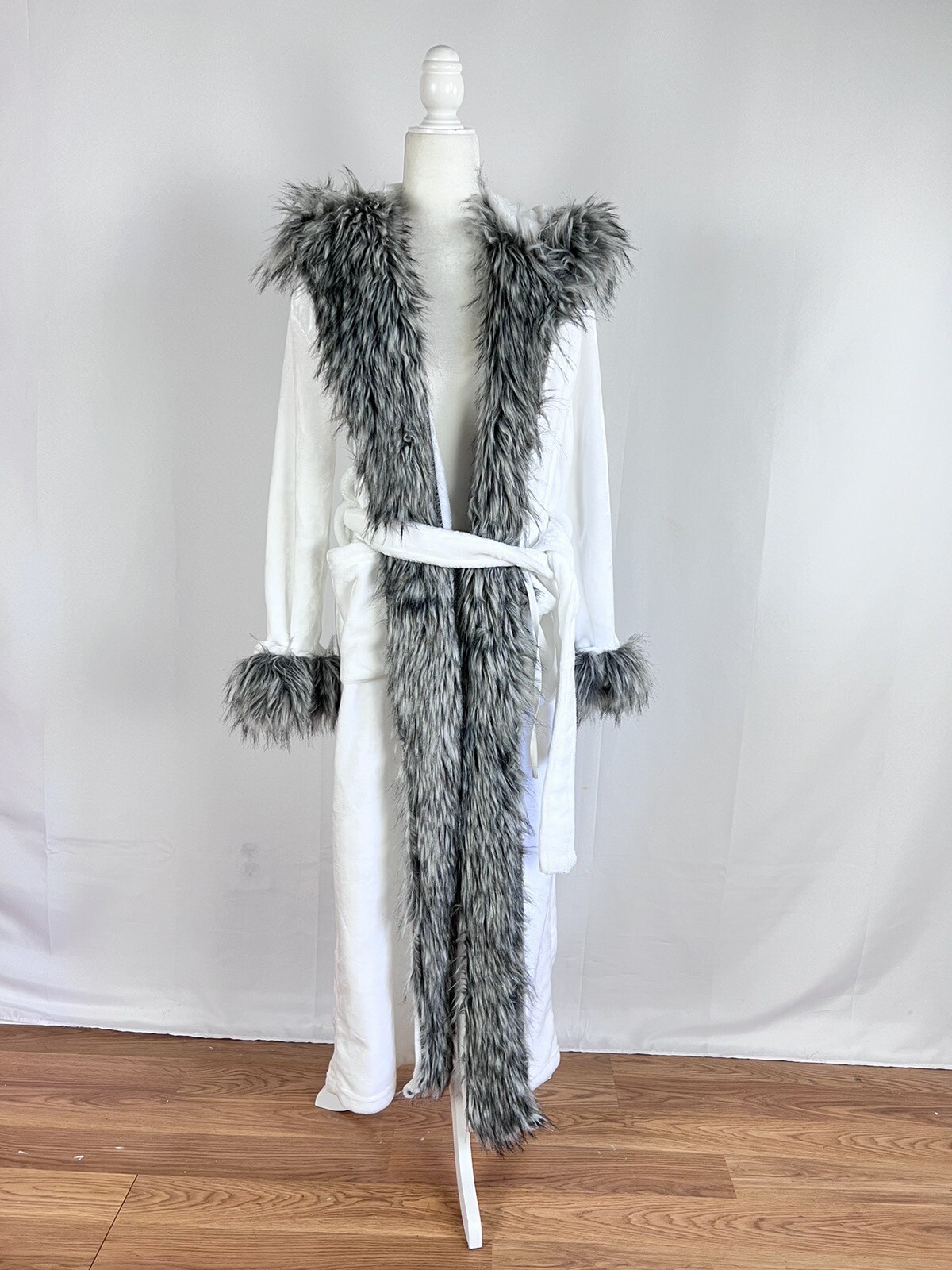 Women s Full Length Plush Robe Hooded Faux Fur Alexander Del Rossa