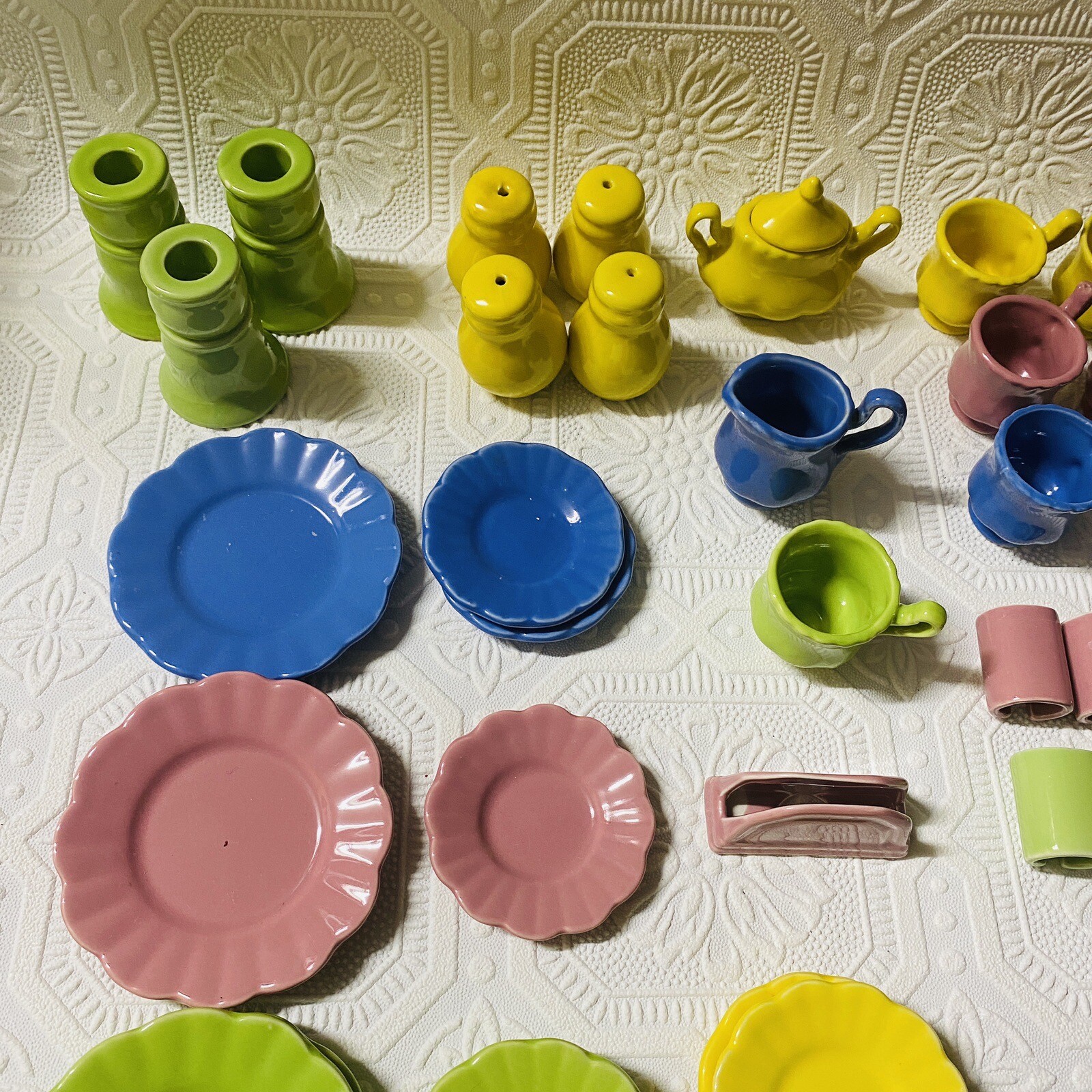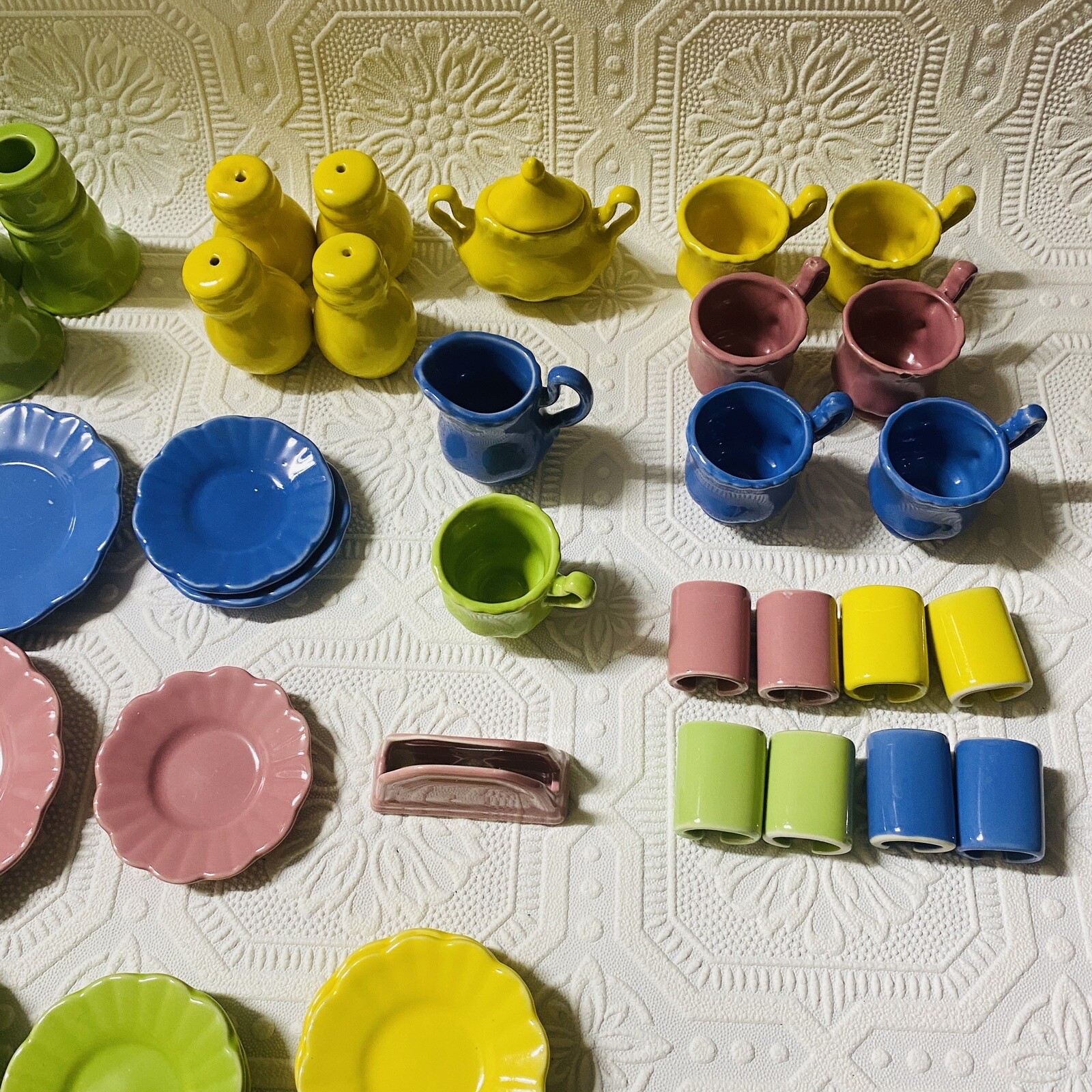 как выглядит Vintage 60 FRENZY TOYS Pastel Fiesta Colors Ceramic Childs Tea Set фото
