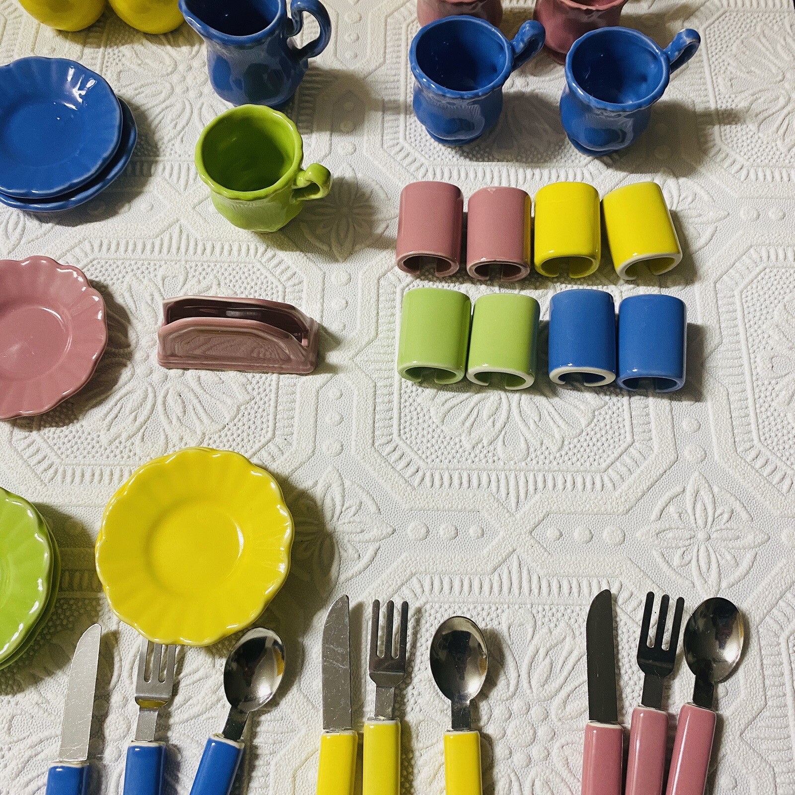 Vintage 60 FRENZY TOYS Pastel Fiesta Colors Ceramic Child's Tea Set