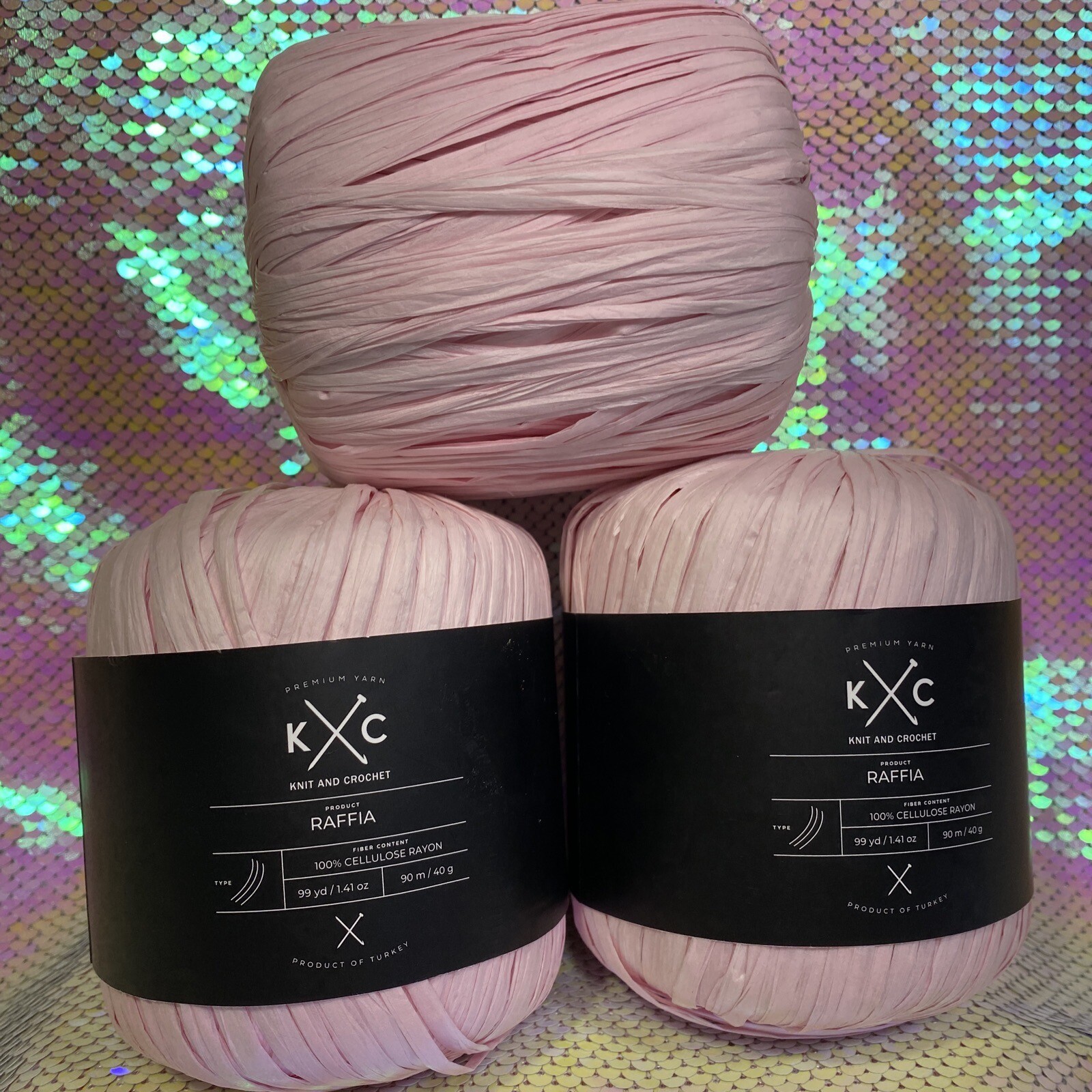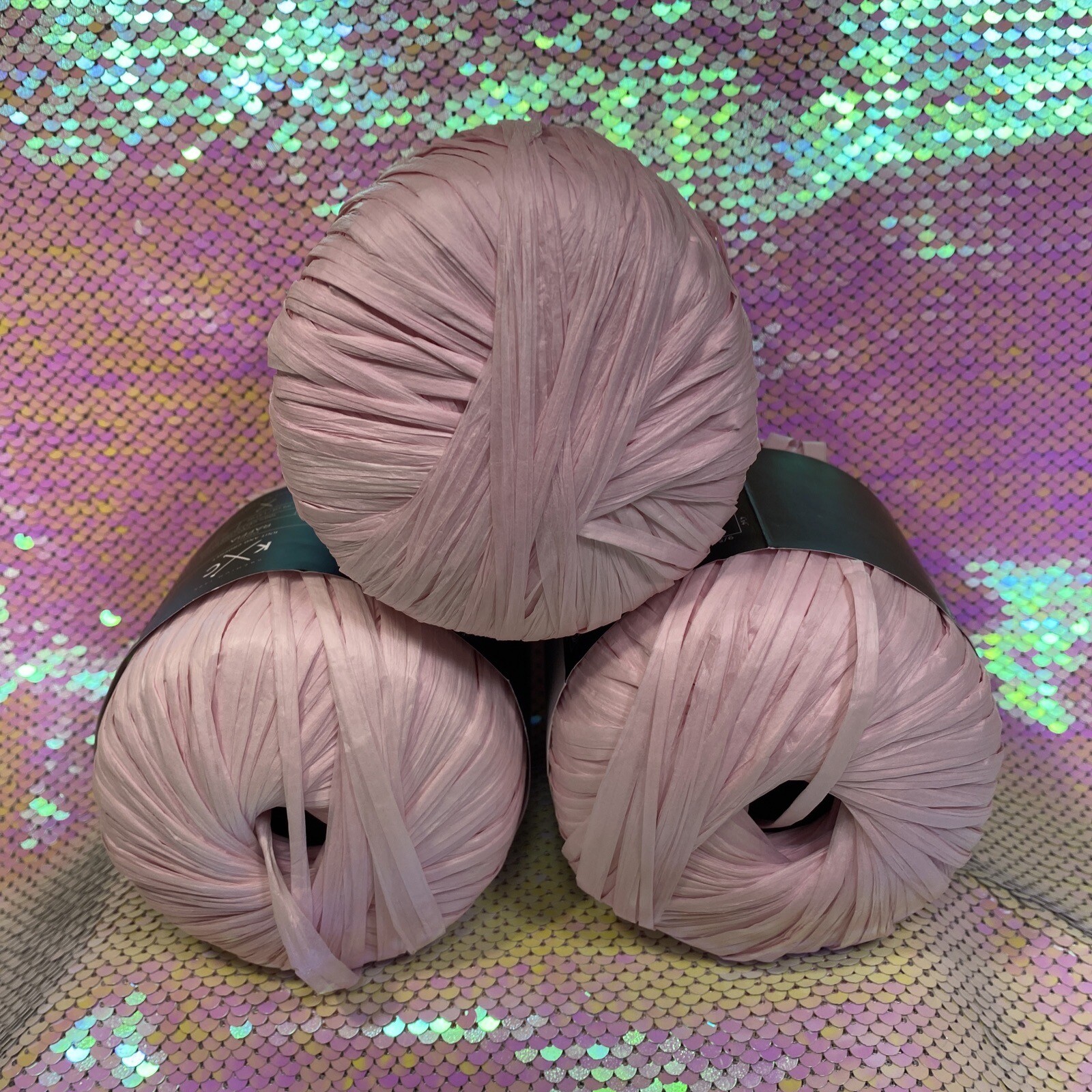 как выглядит Knit and Crochet Premium Yarn Raffia 3 Skeins 100 Cellulose Rayon 99 Yard Pink фото
