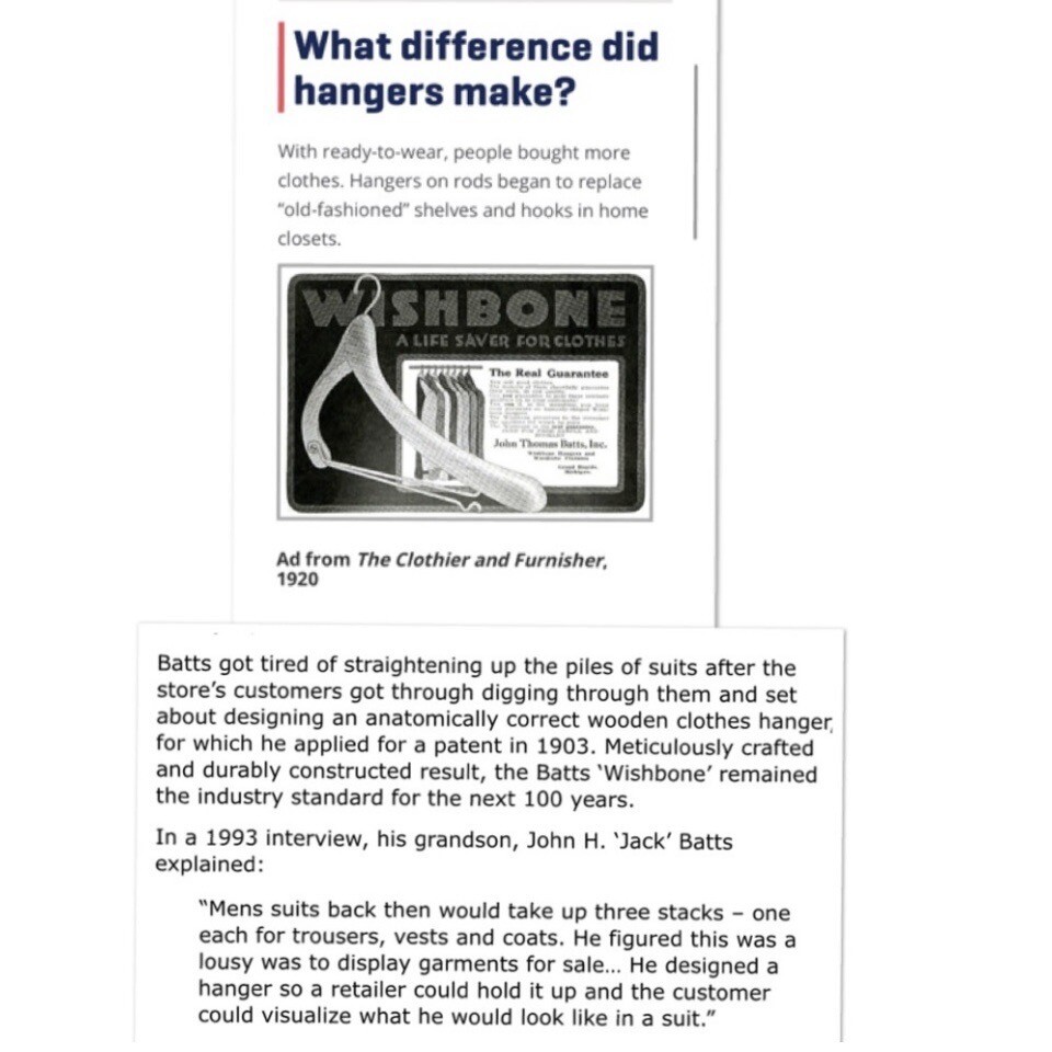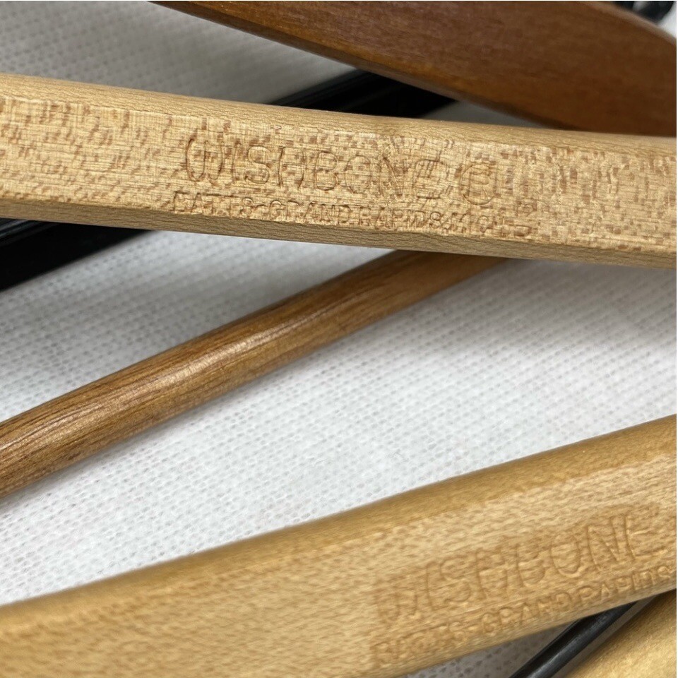 Vintage J.T Batts Wishbone wooden suit hangers from retailer Hughes Spivey.