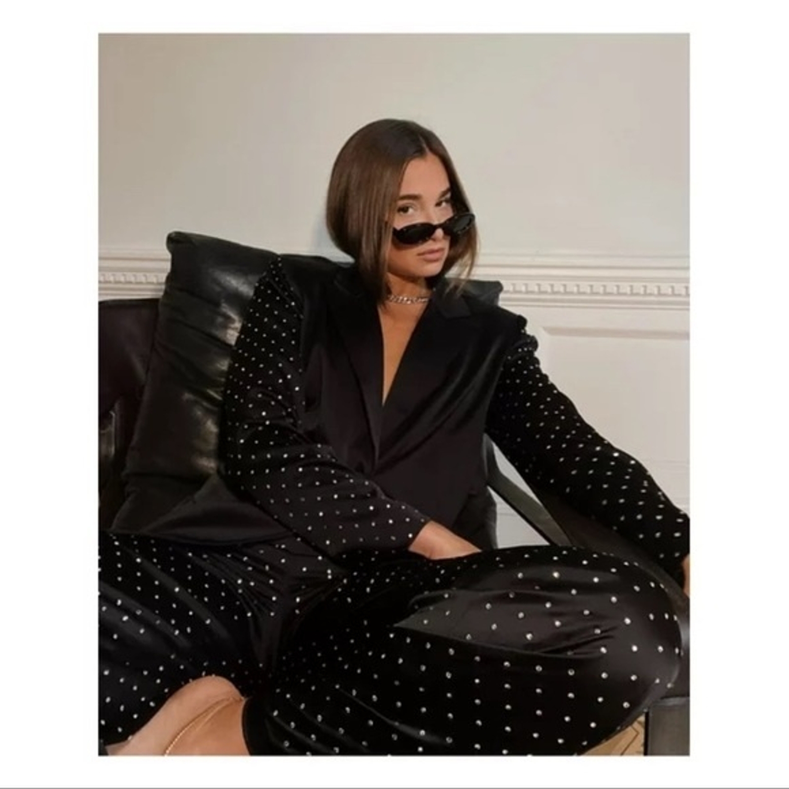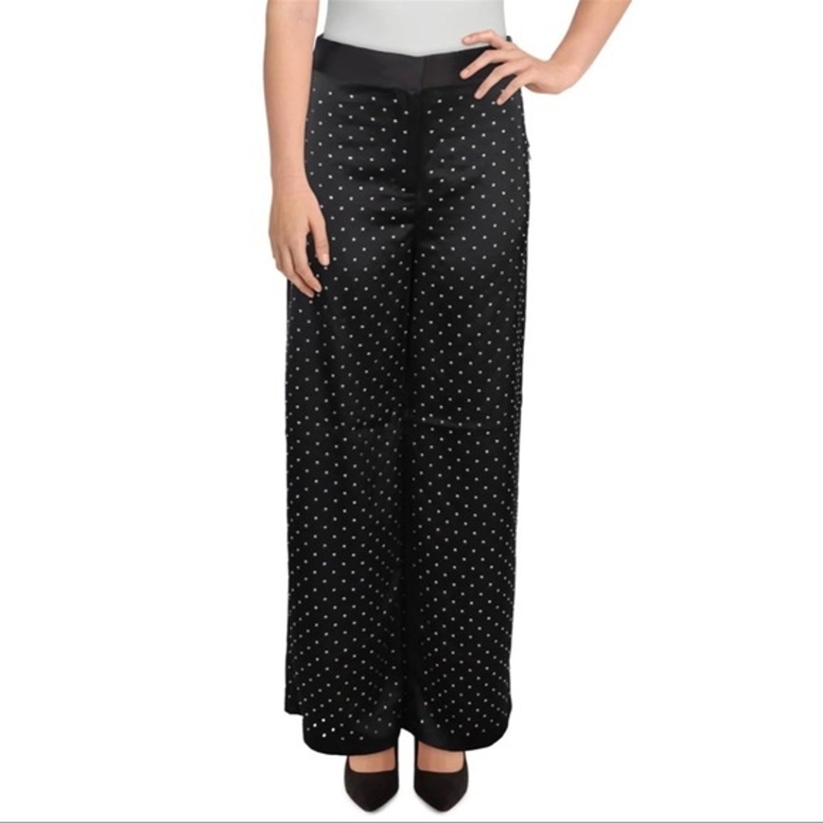 как выглядит DANIELLE BERNSTEIN NWT Black Rhinestone Studded Wide Leg Pants 10 фото