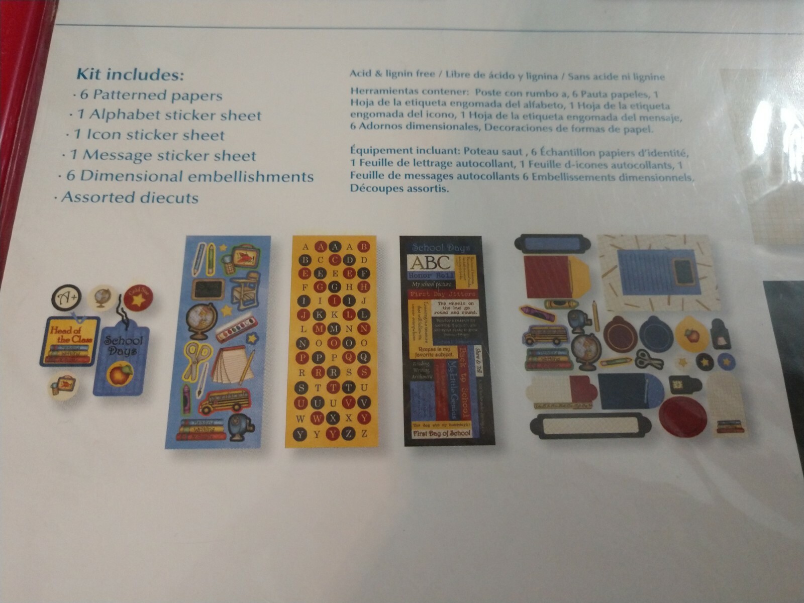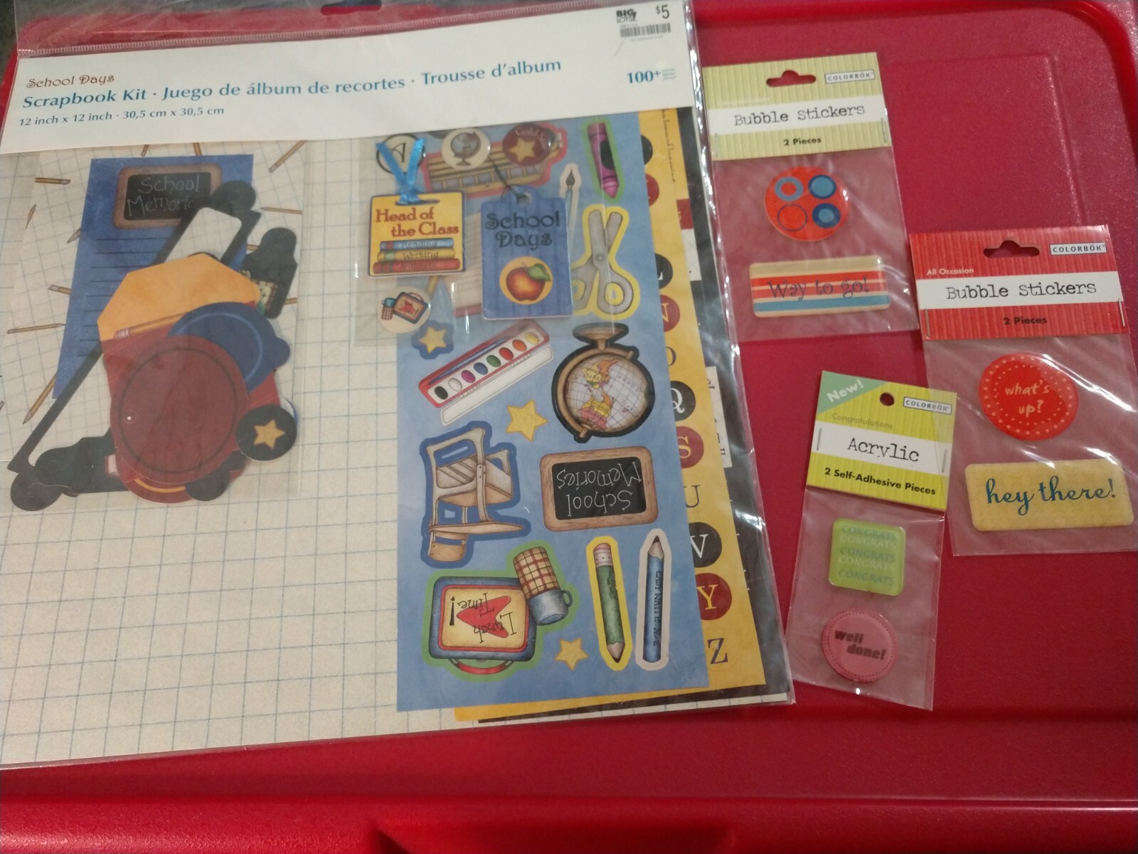 как выглядит New SCRAPBOOK 4 PC SET School Days 12x12 Kit 100 PC; 3 Acrylic Bubble Stickers фото