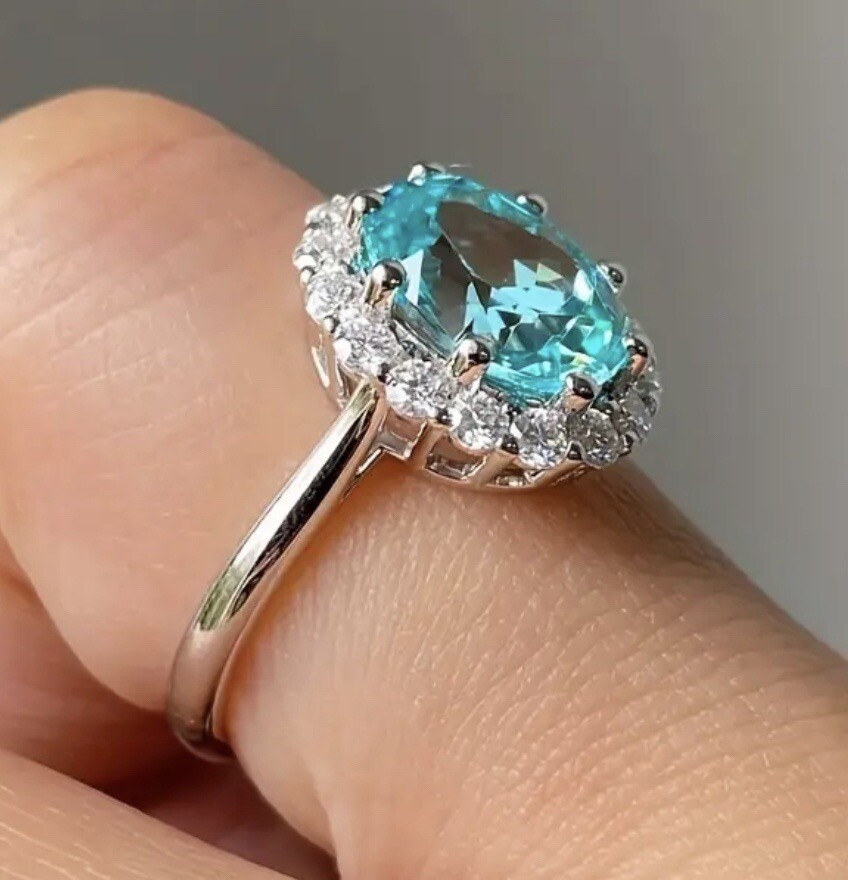как выглядит Aquamarine Lab Created Halo Silver Women s Statement Ring Size 8 In Box фото