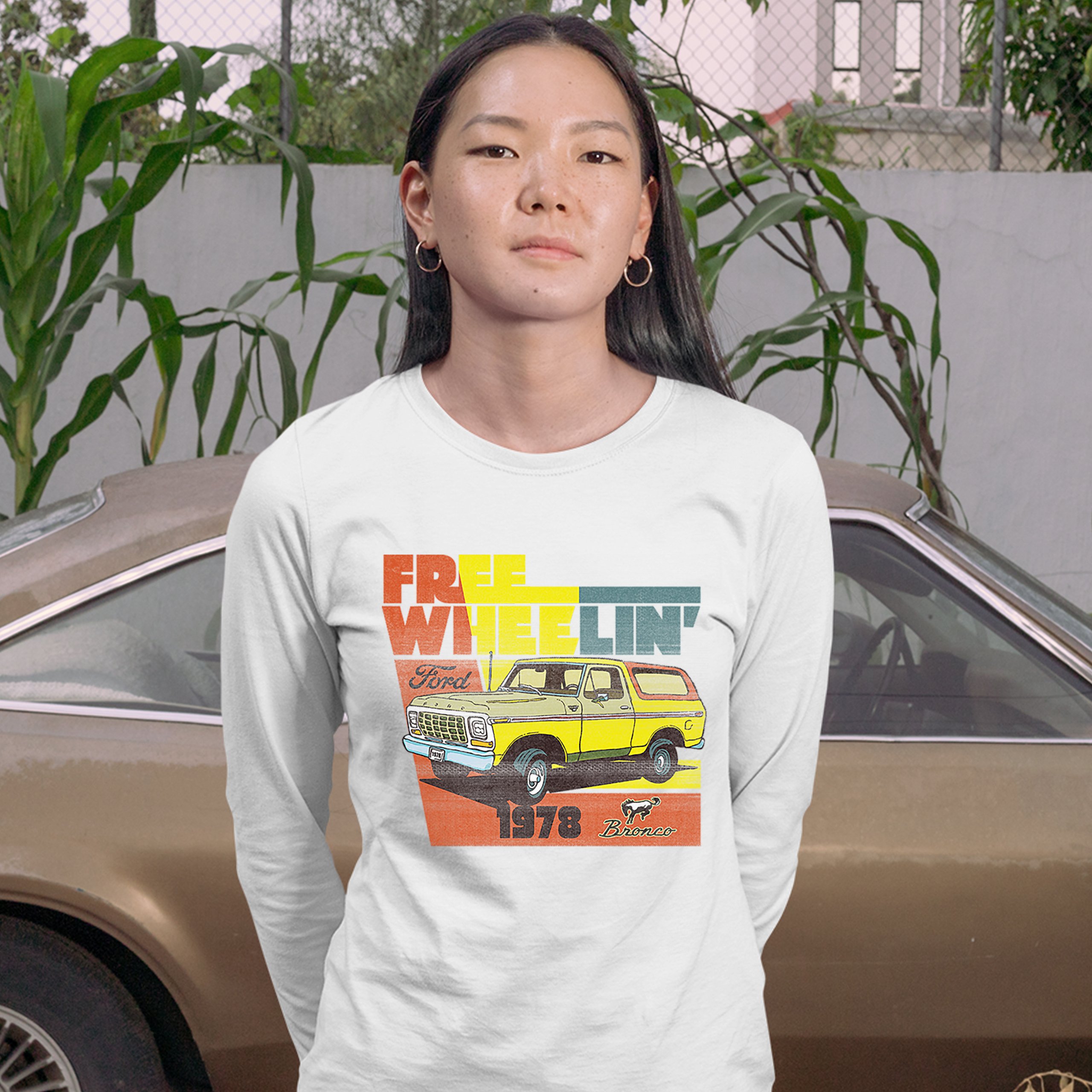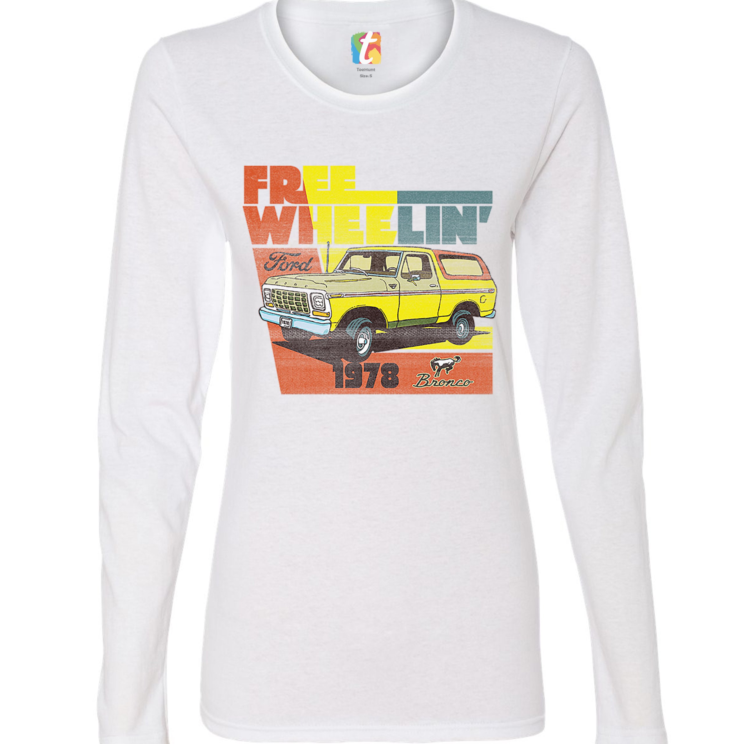 Ford Bronco 1978 Women's Long Sleeve T-shirt Free Wheelin' Truck SUV Licensed
