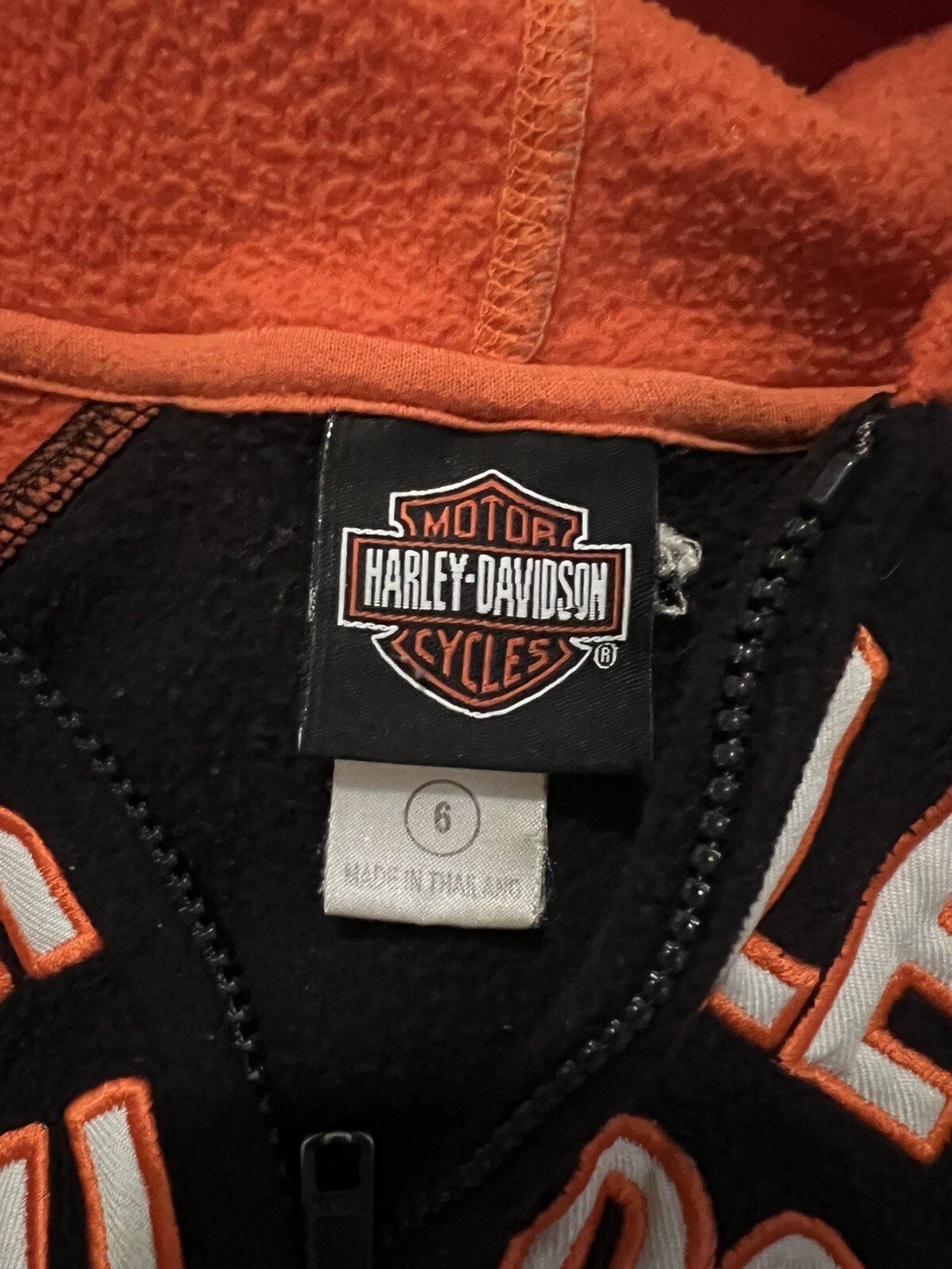 Harley-Davidson Little Boys Zippered Hoodie, Black Orange Sz 6