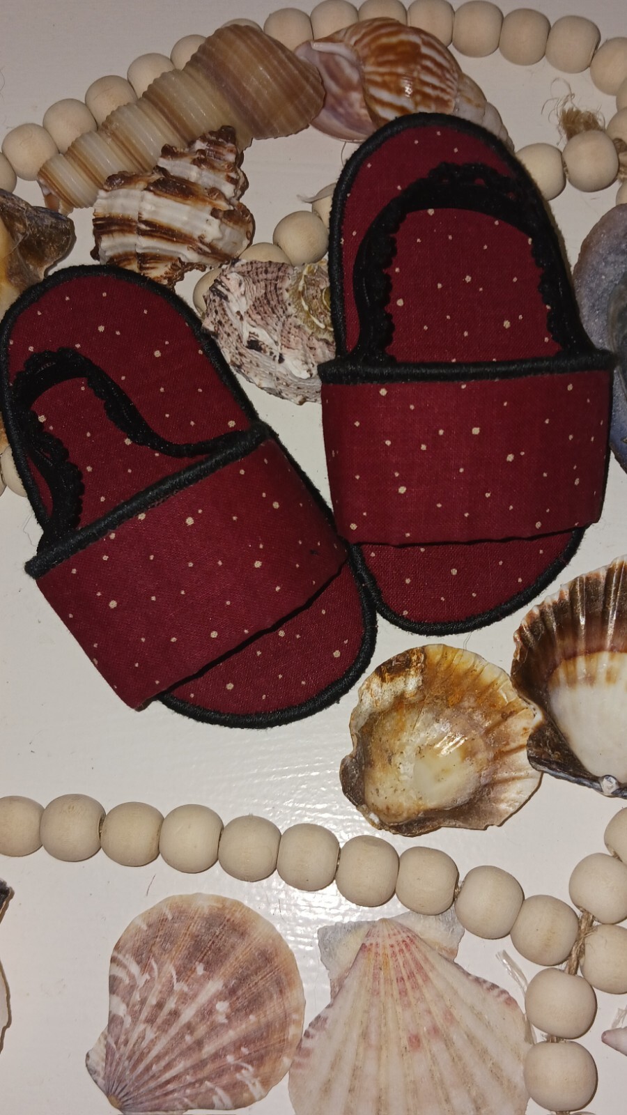Infant Sandals Crimson Black Fabric Slide On w Elastic Heel Strap Made In USA
