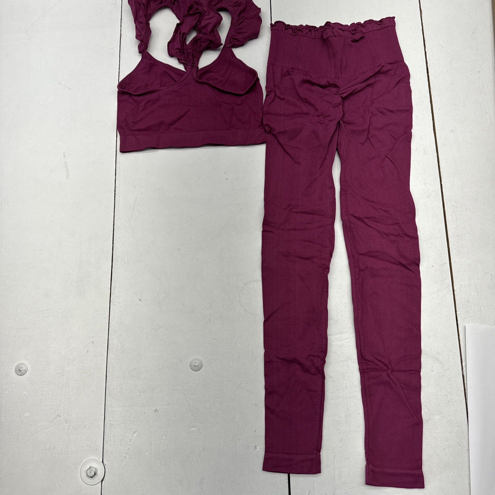 как выглядит Fuchsia 2-Piece Activewear Set Ruffle Crop Top, Leggings Womens Size XS / S фото