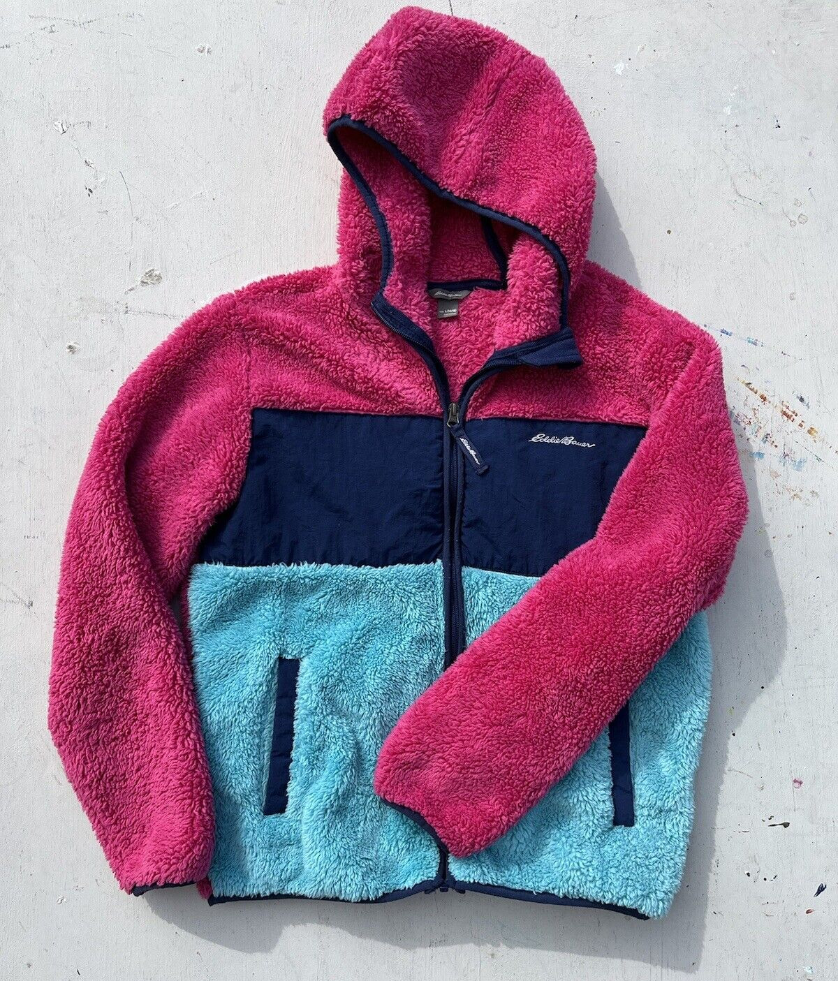 как выглядит Girls Eddie Bauer Jacket Multicolor Fleece Full-Zip L Outdoor Colorblock Snow фото