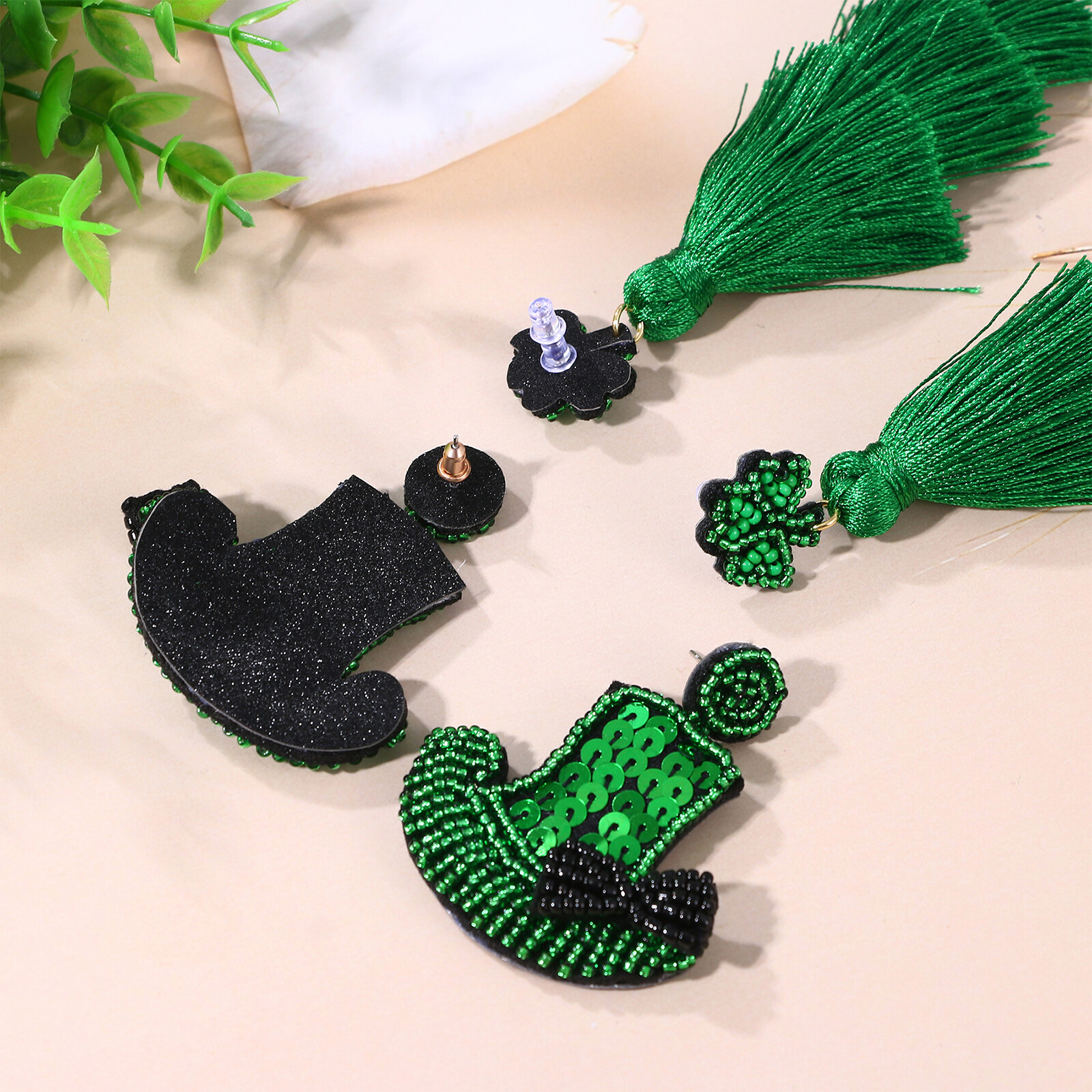2 Pairs St. Patrick's Day Earrings Shamrock Tassels Irish Drop Dangle Earrings