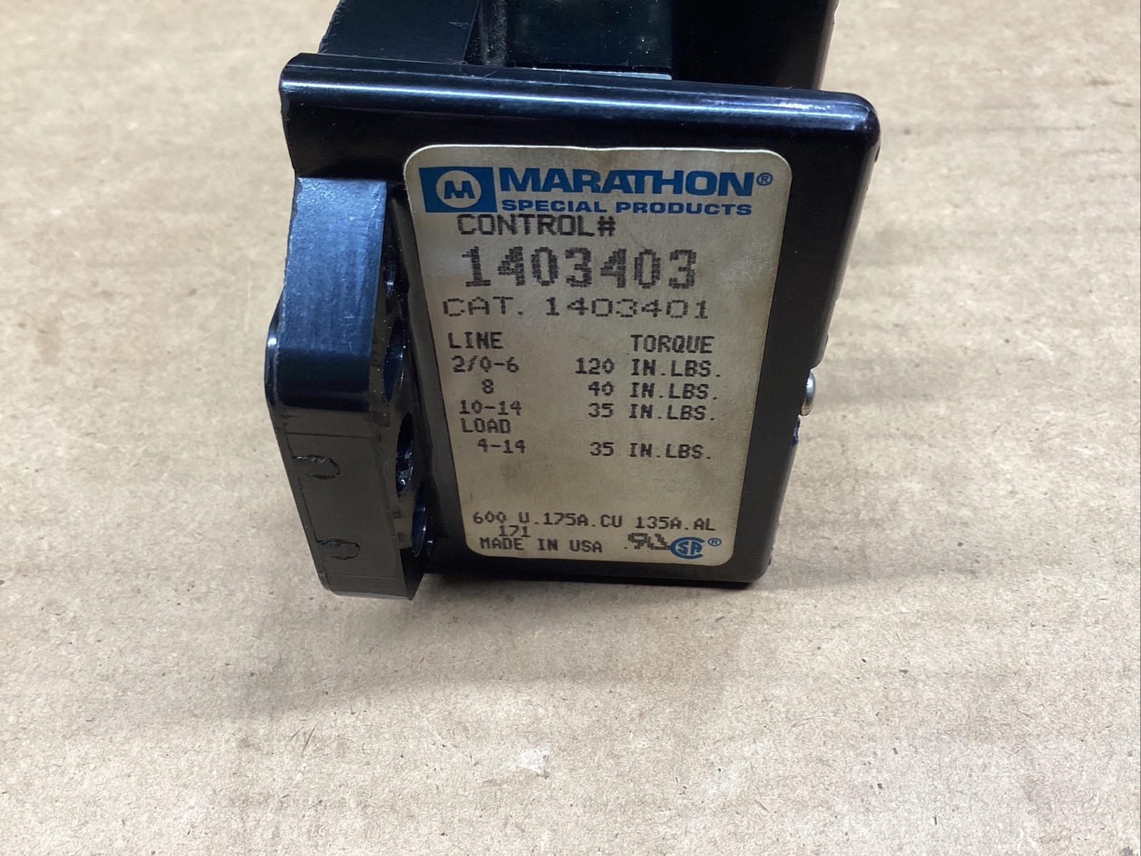 MARATHON 1403403 POWER DISTRIBUTION BLOCK 175A 600V 832M23
