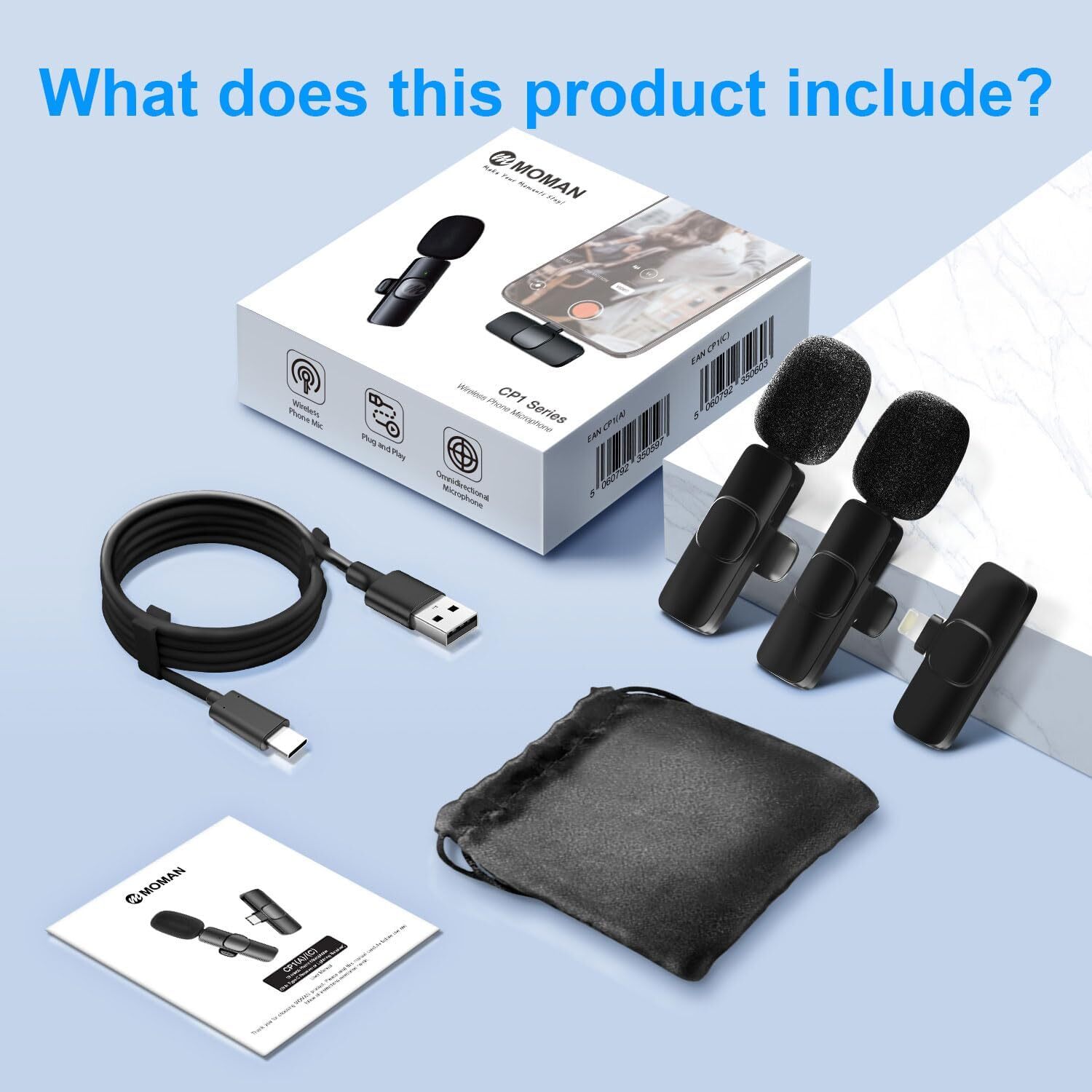 как выглядит Moman Wireless Lavalier Microphone Clip on for Video Recording for Lightning фото