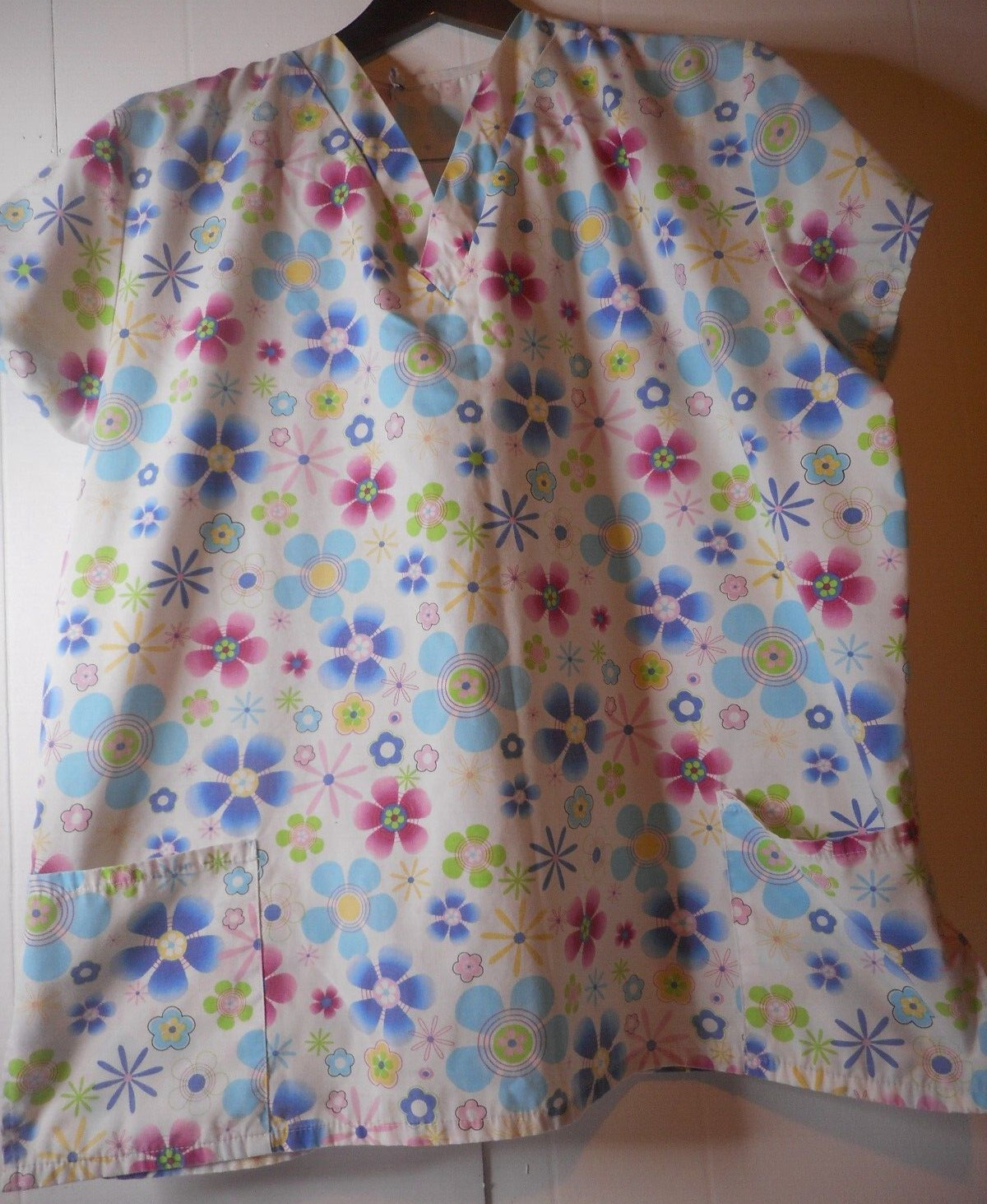 как выглядит Altered Unbranded Womens Pull-Over Short Sleeve Floral Scrub Top READ фото