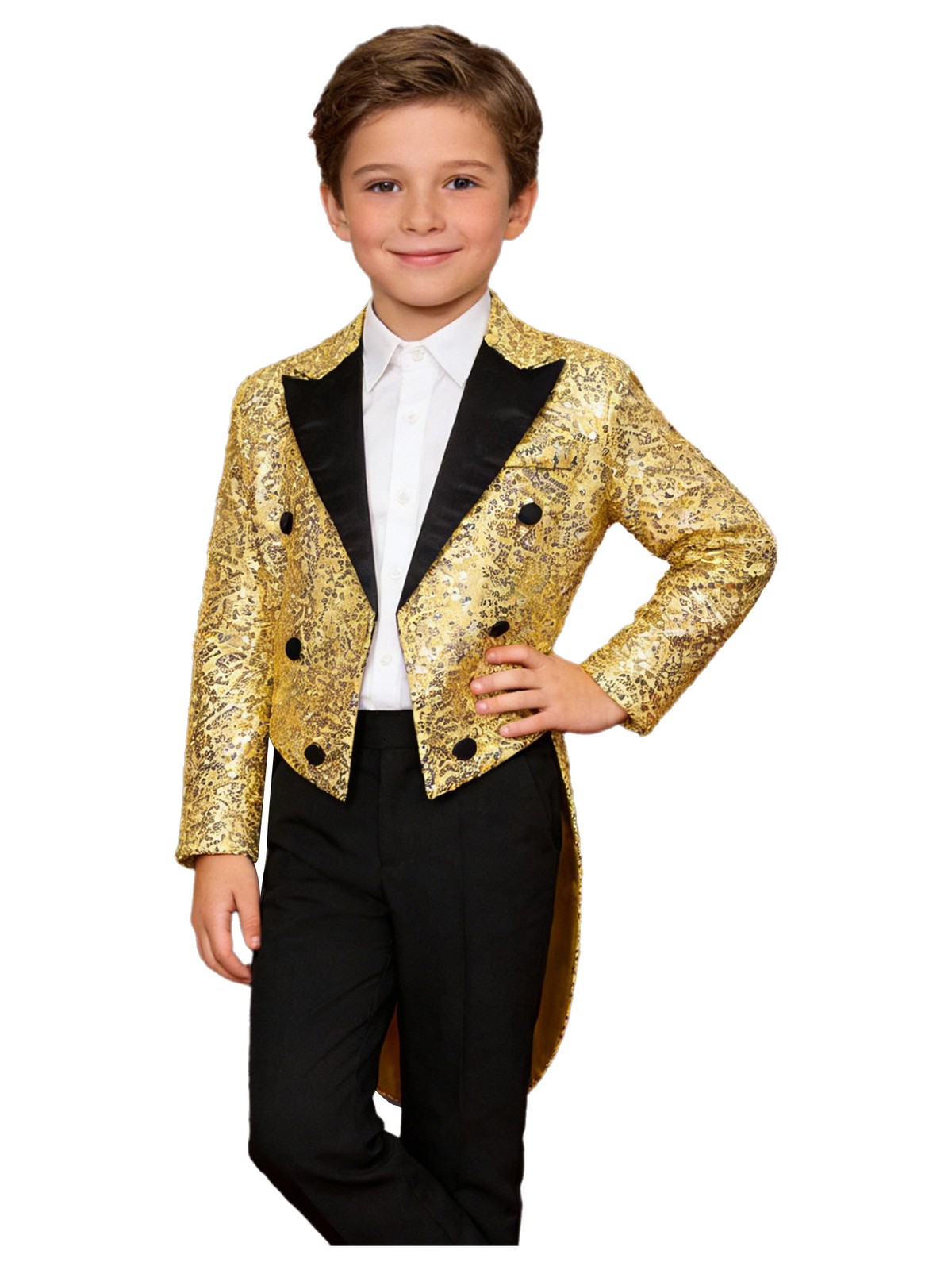 Kid Boy Sequin Tuxedo Jacket Suit Tailcoat Swallowtail Blazer Wedding Costume