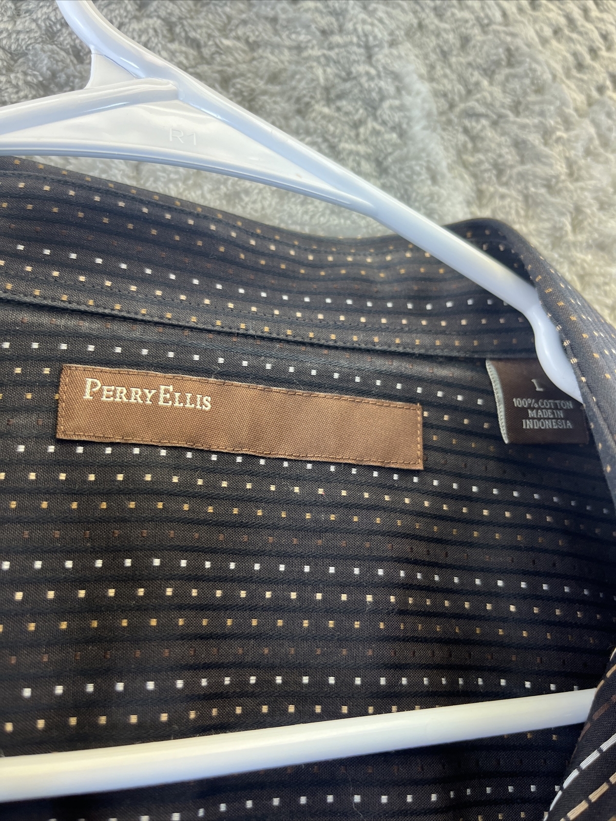 как выглядит Perry Ellis Mens Shirt Large Black Dotted Pattern Long Sleeve Button Down фото