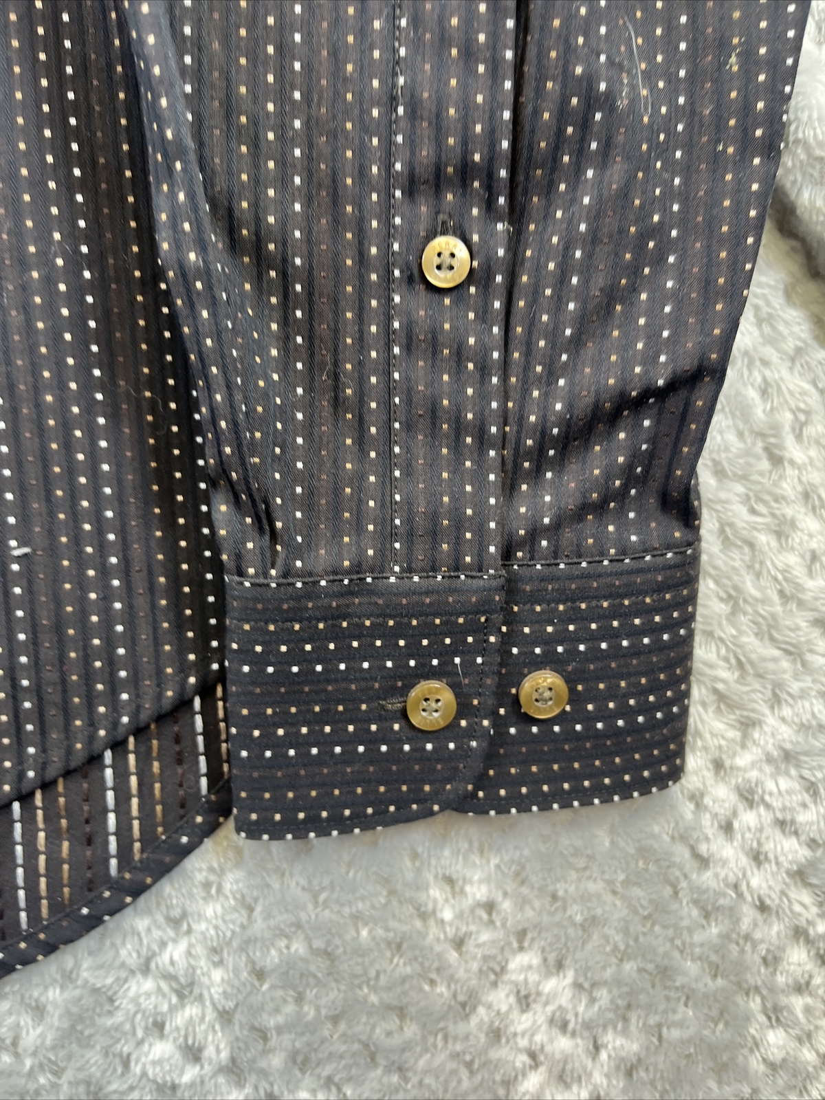 Perry Ellis Mens Shirt Large Black Dotted Pattern Long Sleeve Button Down