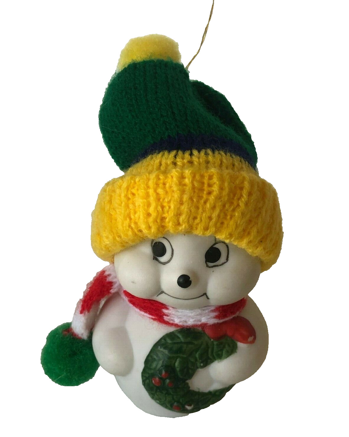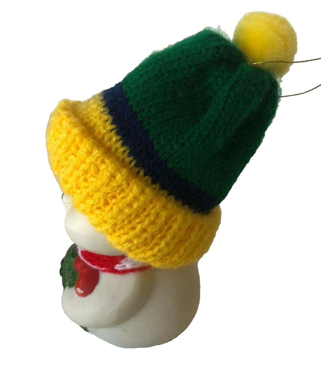 Snowman Bell Porcelain Ornaments Gift Co Snowmen Knitted Hat Christmas Wreath