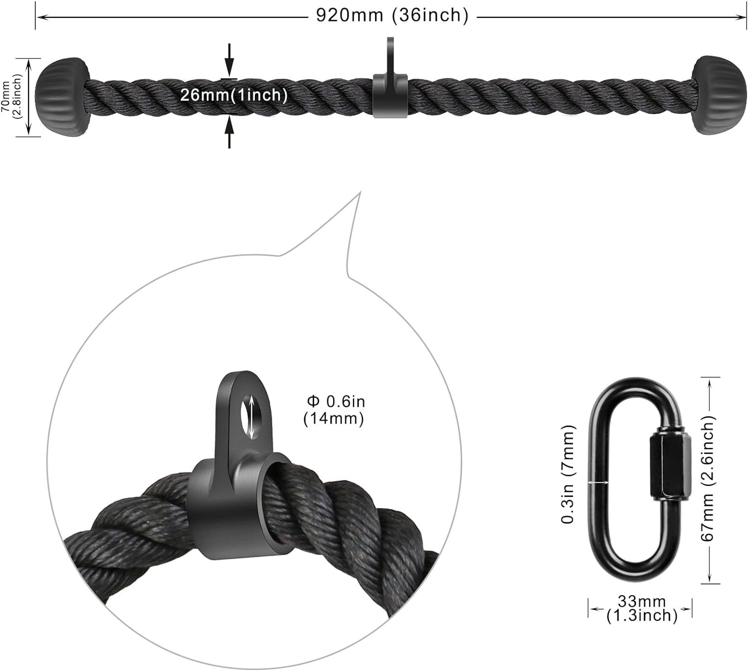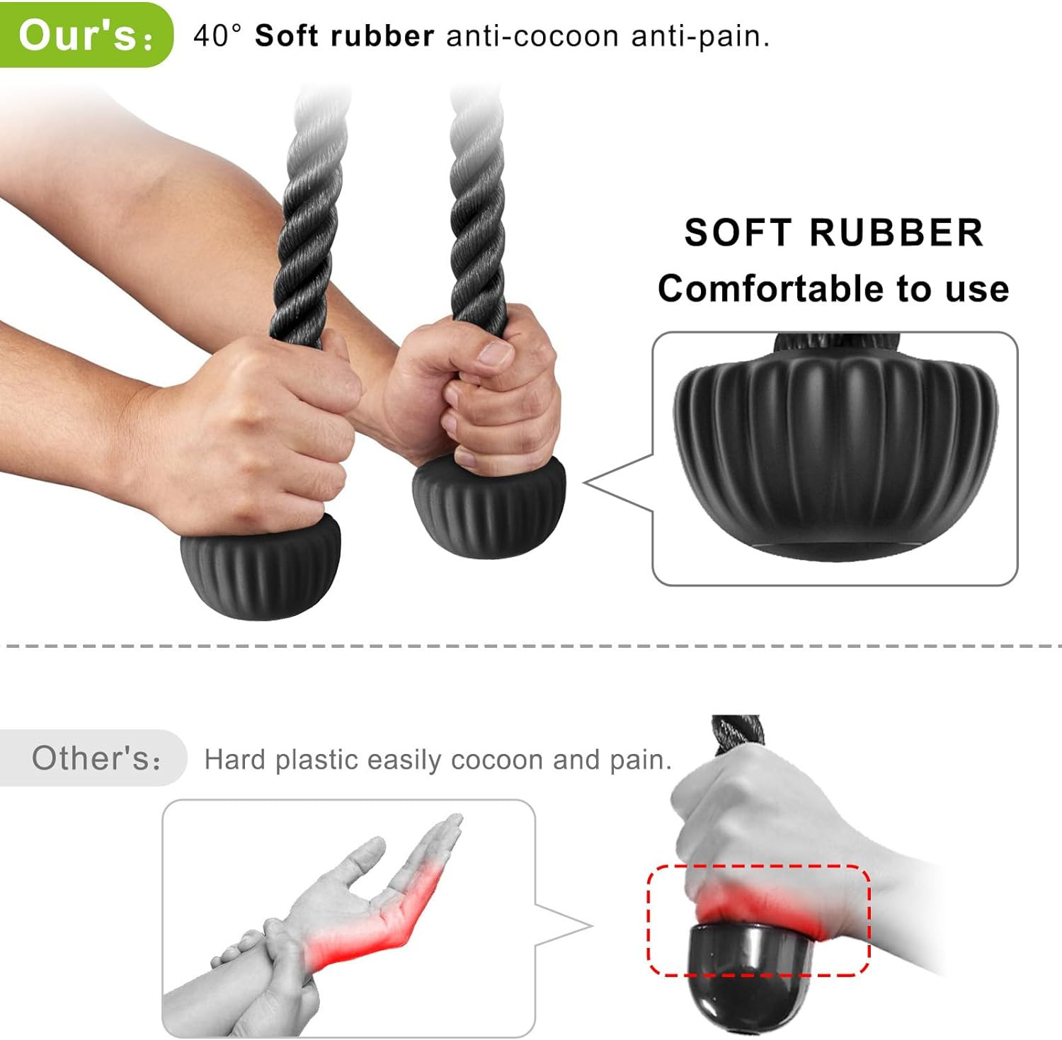 Triceps Rope with Non-Slip Soft Rubber Ends Home Gym Cable 28 36 inches L