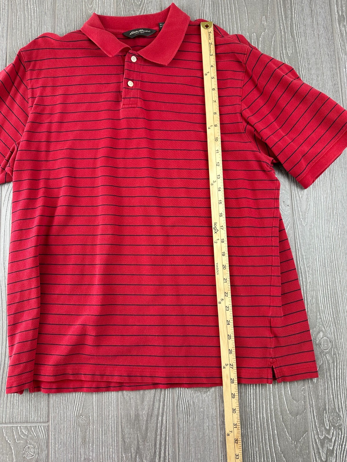 Eddie Bauer Polo Shirt Mens XL Red Cotton Casual Striped